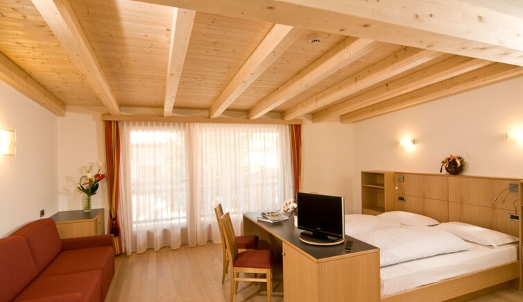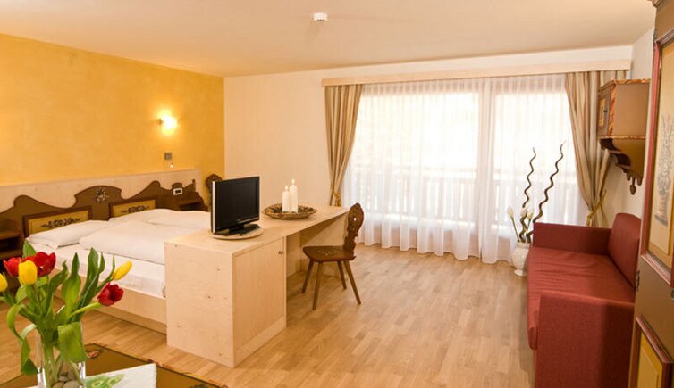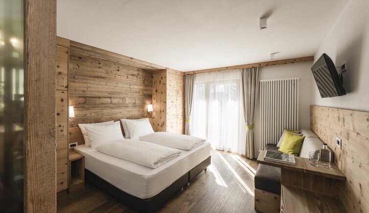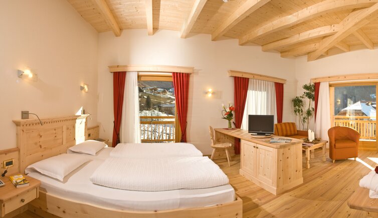 Le camere e suite dell’hotel offrono un’atmosfera rilassante e confortevole, creata anche dall’arredamento intimo in stile ladino.