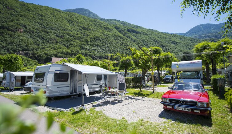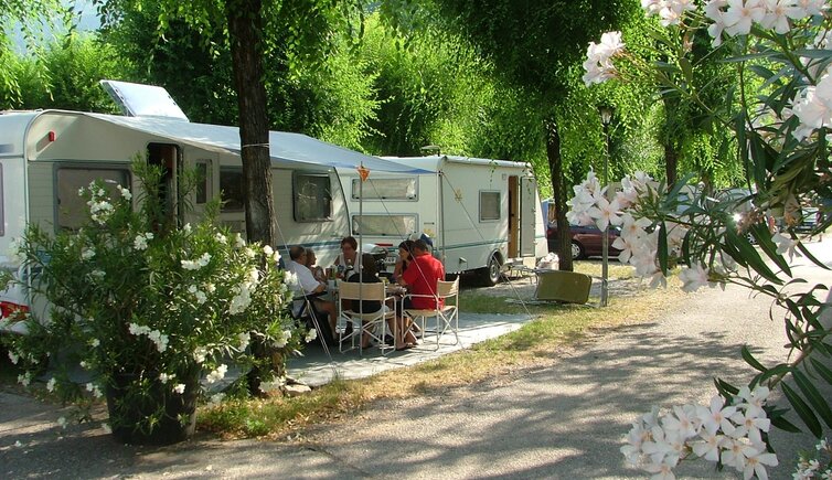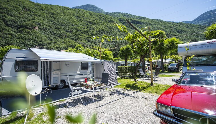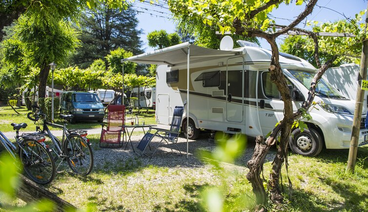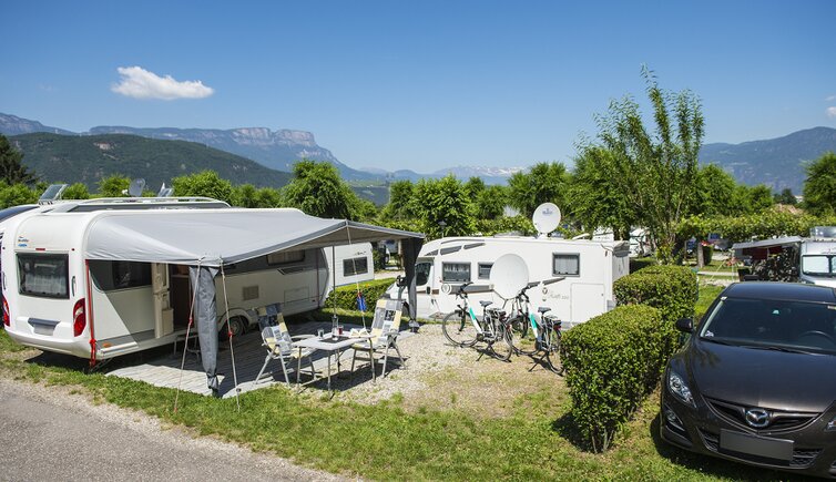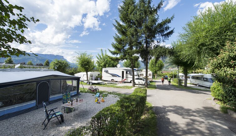 Circondata da frutteti, vigneti e olmi, la nostra struttura è conosciuta come una delle più belle e attrezzate della Bassa Atesina e offre tutti i vantaggi di un moderno campeggio. Offriamo 180 piazzole (alcune anche di 12 metri di lunghezza) dotate di presa di corrente (6-10A), e bungalows in legno di diverse grandezze.