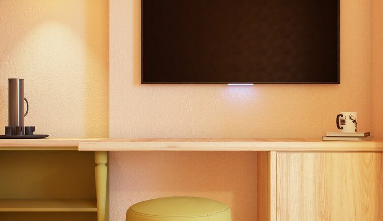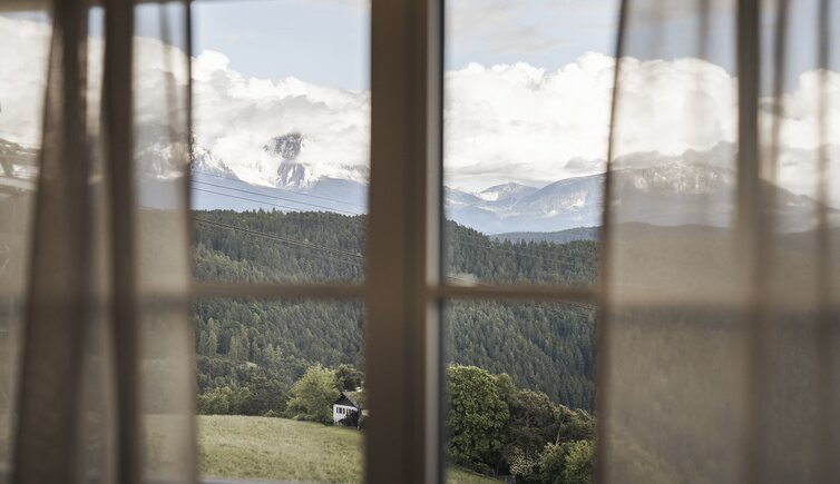 Situato in una soleggiata posizione panoramica, regala una splendida vista su prati, boschi e sulle montagne dell’Alto Adige.