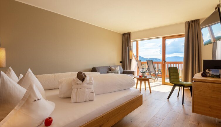 Sentitevi accolti in un’atmosfera familiare, godete di una stupenda vista verso le Dolomiti a 180 gradi dalla terrazza panoramica, oppure gustate i dolci fatti in casa nel Panoramacafé.