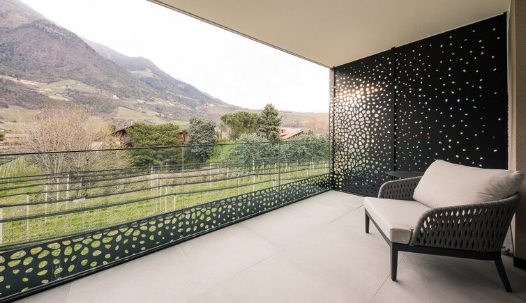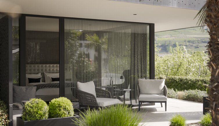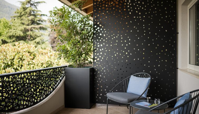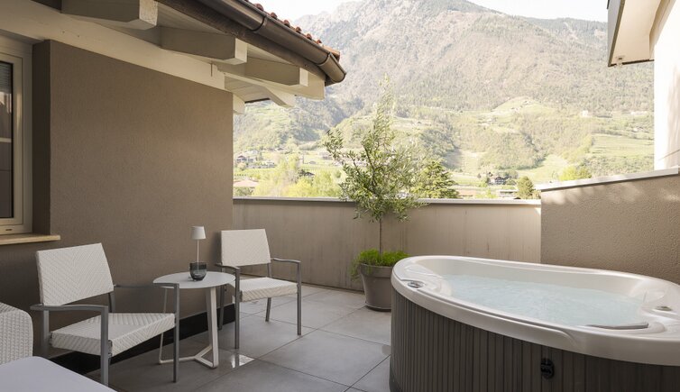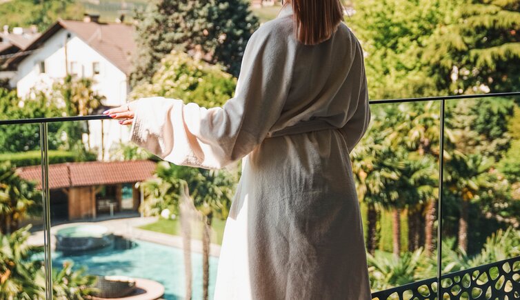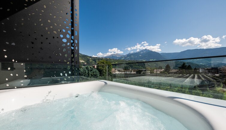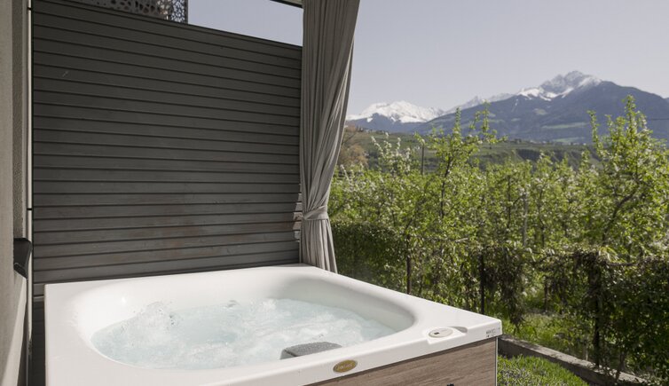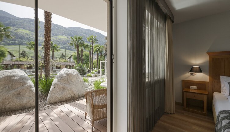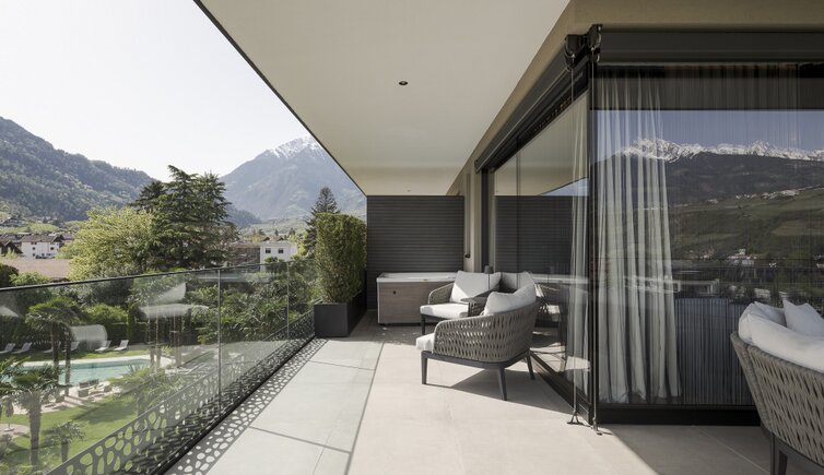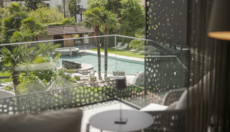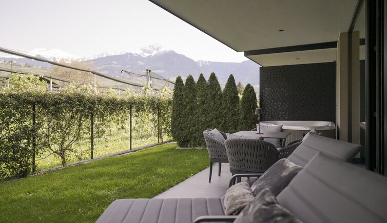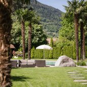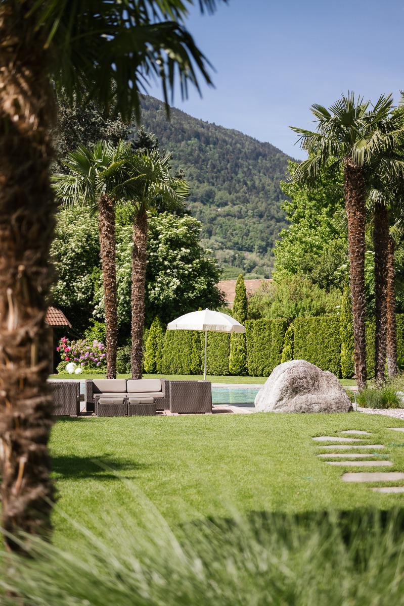 Il Dorner si trova tra montagne, palme e meleti nel paese giardino di Lagundo, proprio accanto alla città termale di Merano.