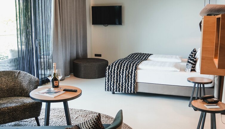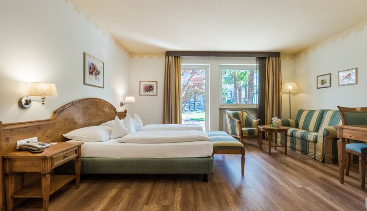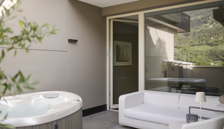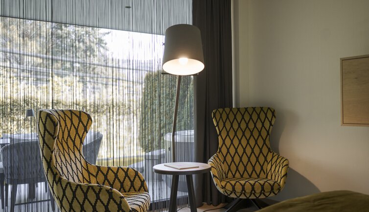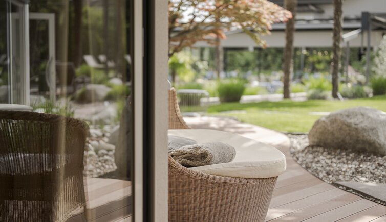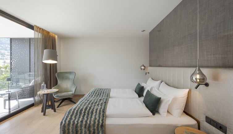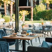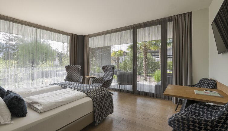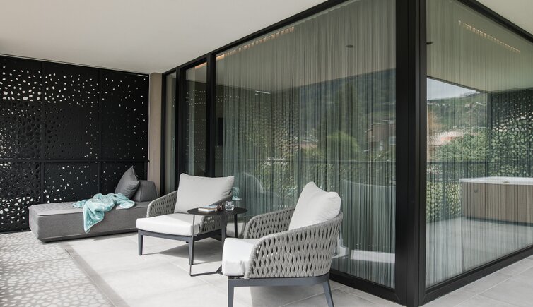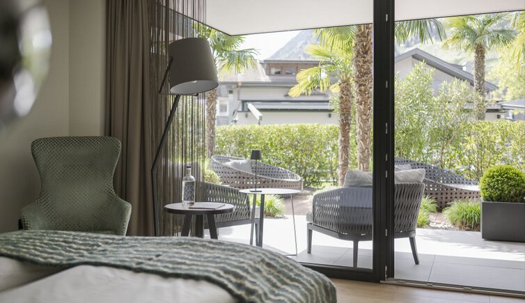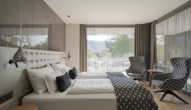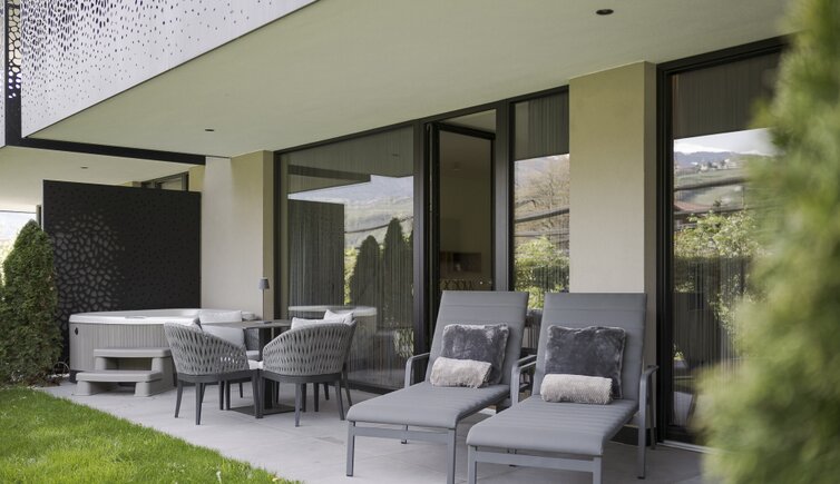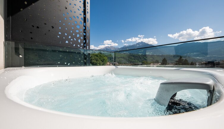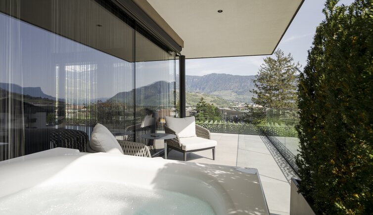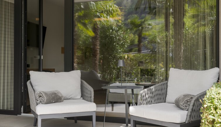 Il Dorner si trova tra montagne, palme e meleti nel paese giardino di Lagundo, proprio accanto alla città termale di Merano.