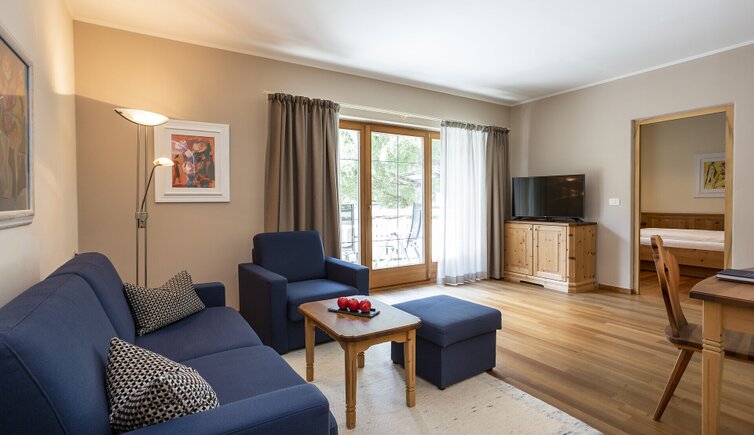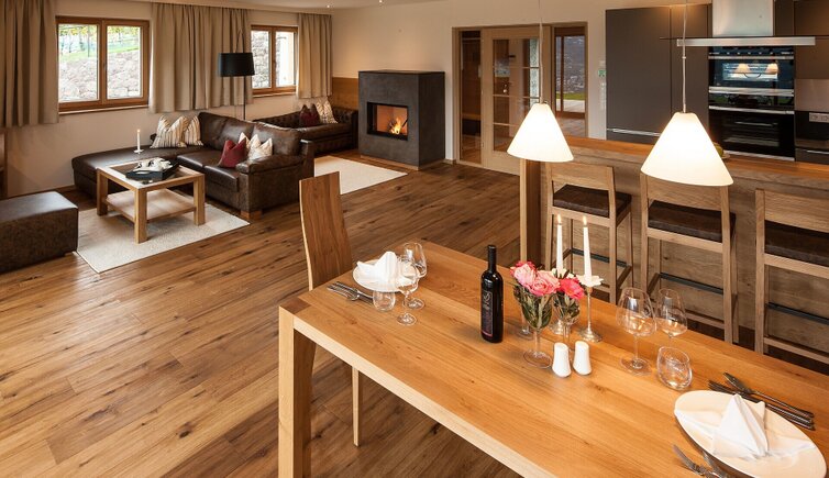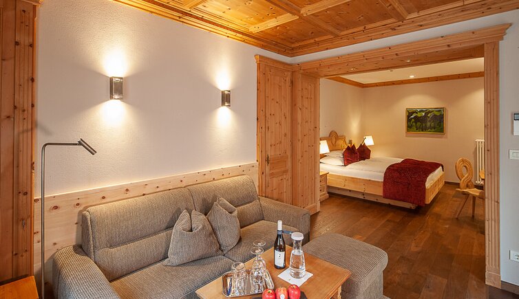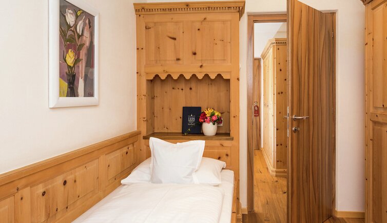 Il legno locale di noce e pino cembro dona all’ambiente un’atmosfera confortevole e accogliente.