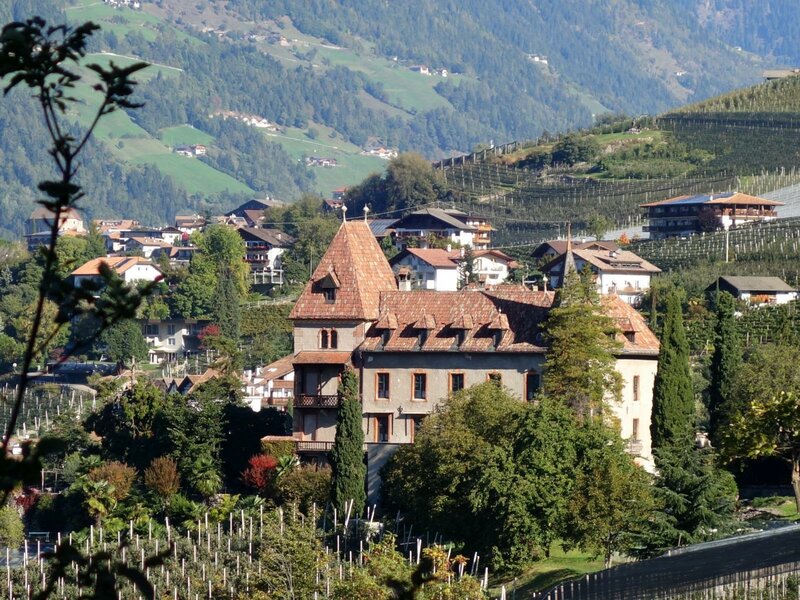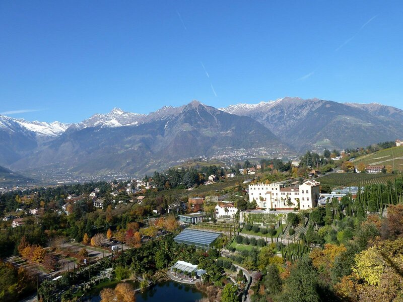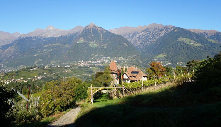 Nelle immediate vicinanze si trovano altre due dimore signorili: Castel Rametz con il suo Museo del Vino, che offre degustazioni durante le visite guidate, e i Giardini di Castel Trauttmansdorff, circondati da un parco botanico unico. I giardini tematici includono i Paesaggi dell'Alto Adige, i Giardini Acquatici e Terrazzati, i Boschi del Mondo e i Giardini del Sole.