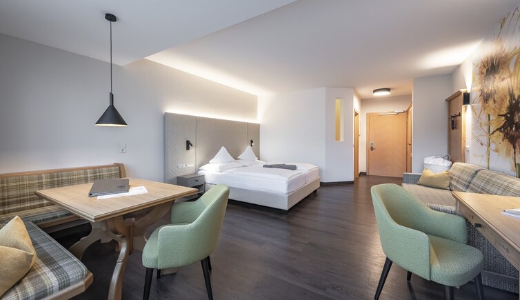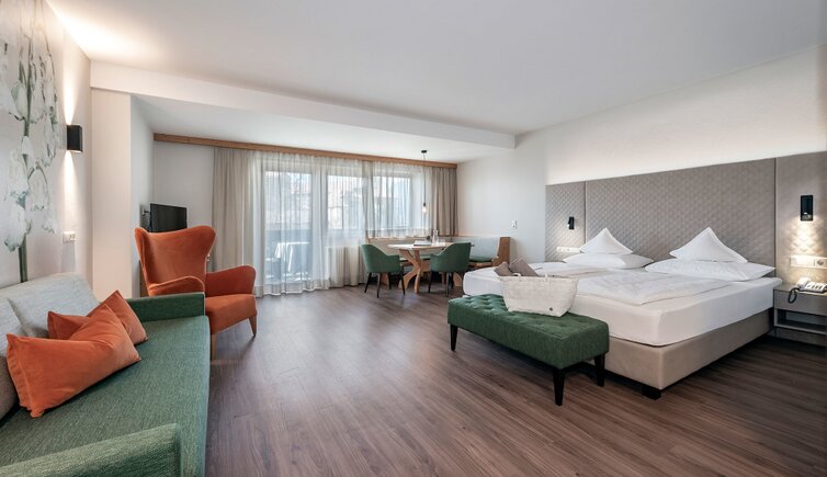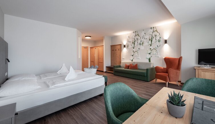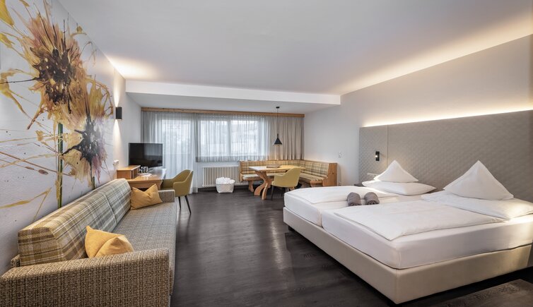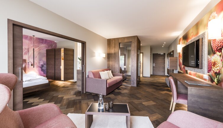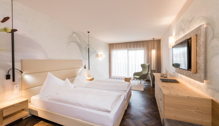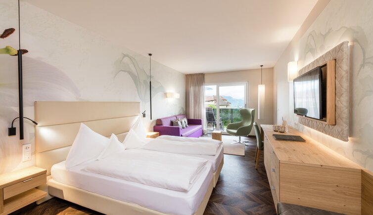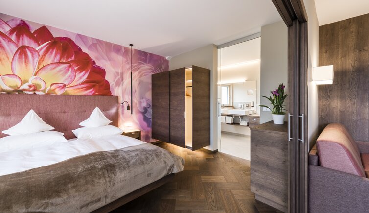 Camere e suite dell’albergo prendono il loro nome dai fiori e offrono una stupenda vista sul meranese. Grazie a un’armonia di colori e un arredamento senza tempo, creano un ambiente in cui sentirsi bene.