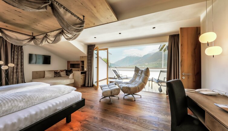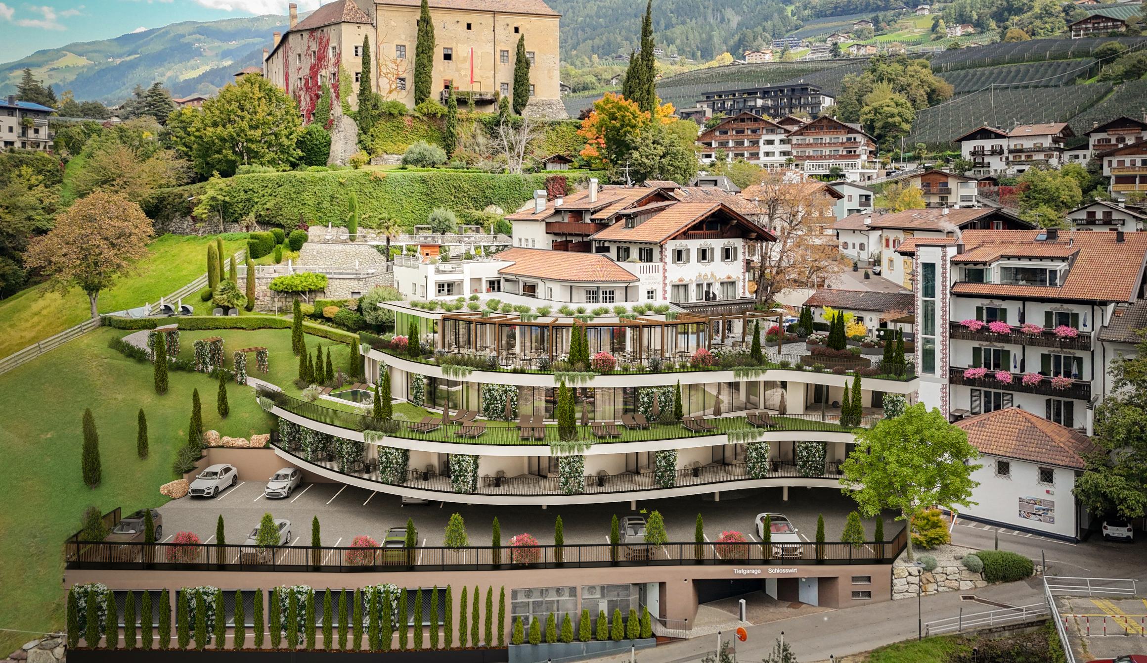 Lo storico Hotel Schlosswirt si trova nel cuore del centro storico di Scena. In una posizione privilegiata, direttamente sotto le imponenti mura di Castel Scena, gli ospiti godono di una vista panoramica incomparabile che si estende su tutta la regione di Merano fino alla Val Venosta.