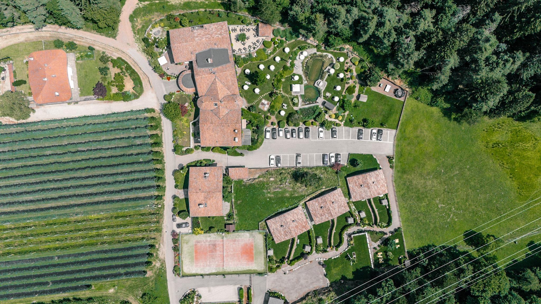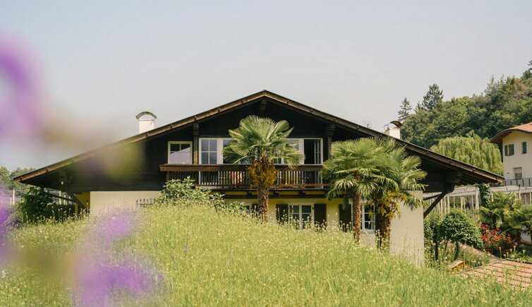 Il nostro "Hotel famigliare", ai bordi del bosco, circondato da incantevoli frutteti, si trova nella parte più bella e tranquilla di Tesimo.