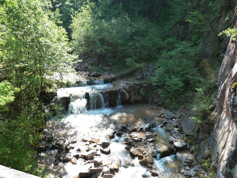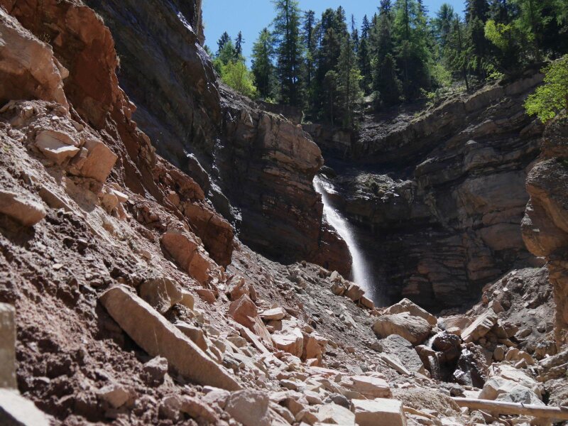 Questa gola è la prosecuzione della nota gola del Rio delle Foglie ai piedi del Corno Bianco. Gli interessanti reperti rinvenuti in questo canyon, come tracce pietrificate e fossili, sono esposti nei centri visitatori di Aldino e Redagno. Il sentiero "Katzenleiter" scende oggi da Aldino fino a Ora nel fondovalle. Il percorso si snoda in ripida discesa per oltre 550 gradini di roccia, costeggiando la condotta forzata della centrale idroelettrica fino a raggiungere la Strada del Vino dell'Alto Adige.