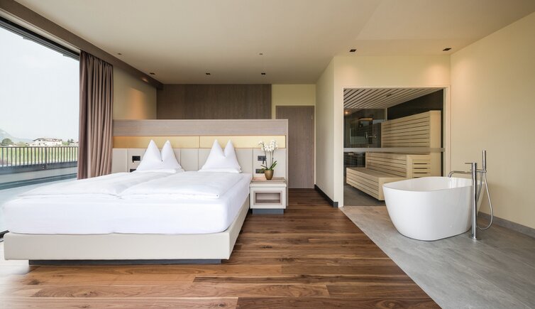 Le lussuose private spaSUITES con una sauna privata e il suitesPOOl lungo 60 metri offrono momenti speciali che fanno venire la pelle d’oca.