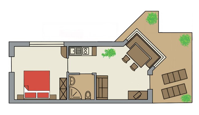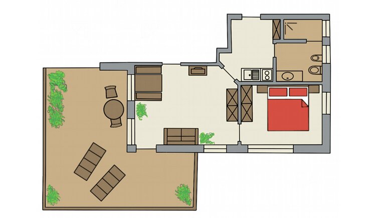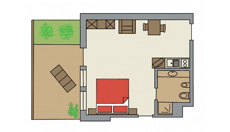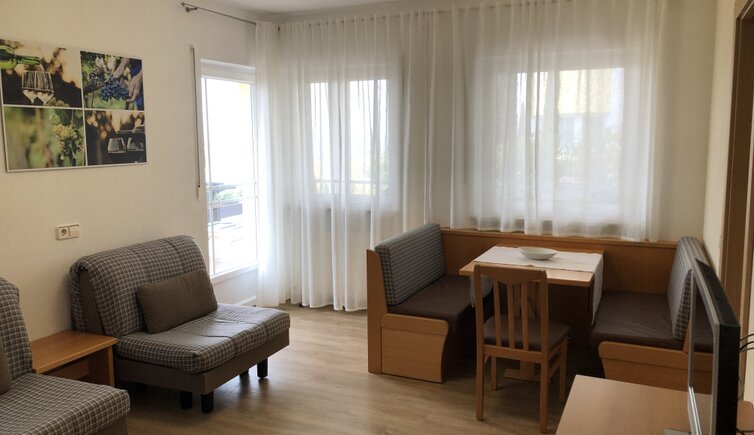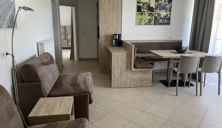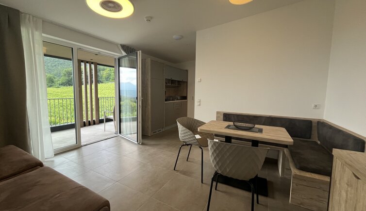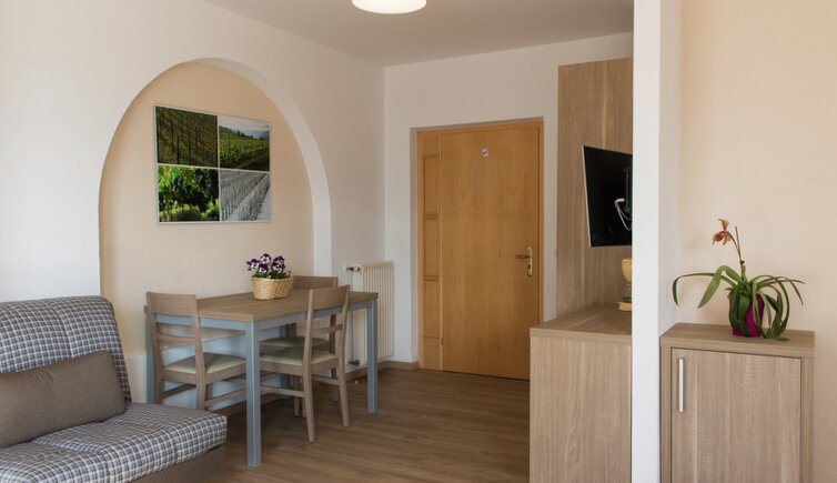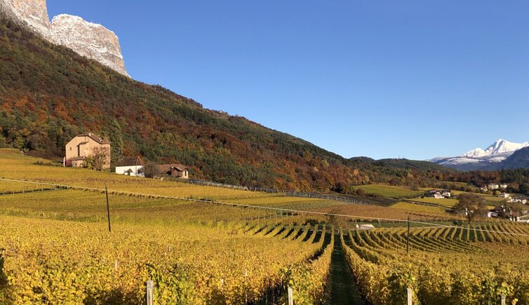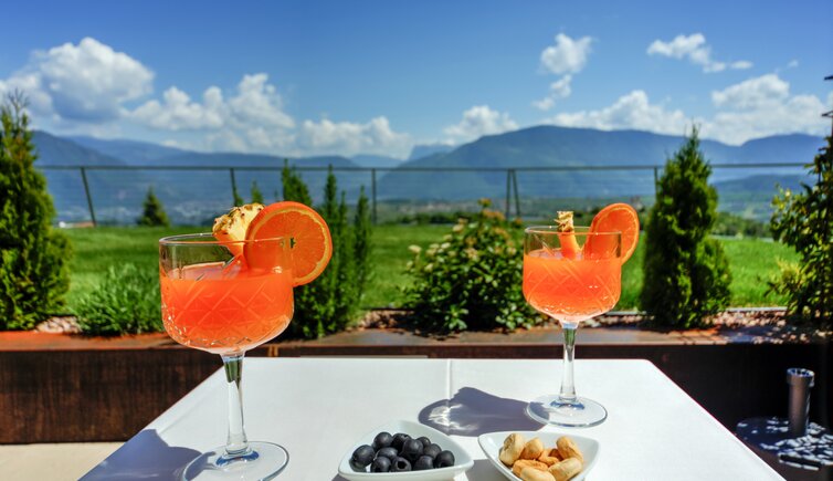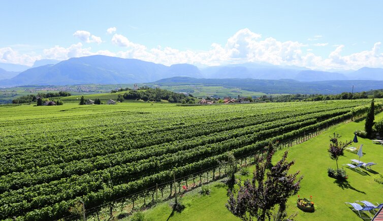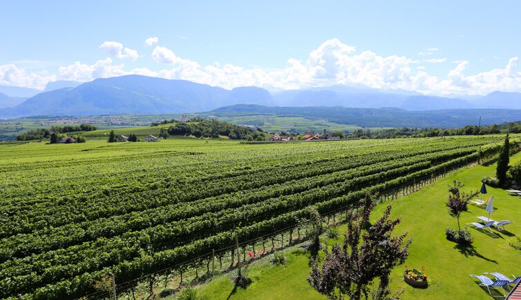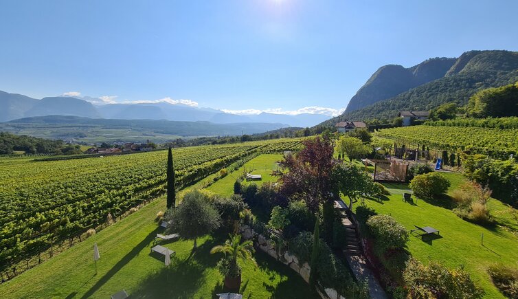 Il prato a forma di terrazze piene di sole ed in stile mediterraneo completa l’area particolare della zona di Appiano sulla Strada del vino particolarmente ricca di castelli e nota per i suoi vini.