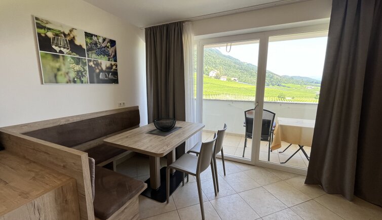 Potete rilassarvi intorno alla piscina nel centro benessere o semplicemente ammirare la stupenda vista verso le montagne circostanti o verso la cittá di Bolzano (ca. 10 km).
