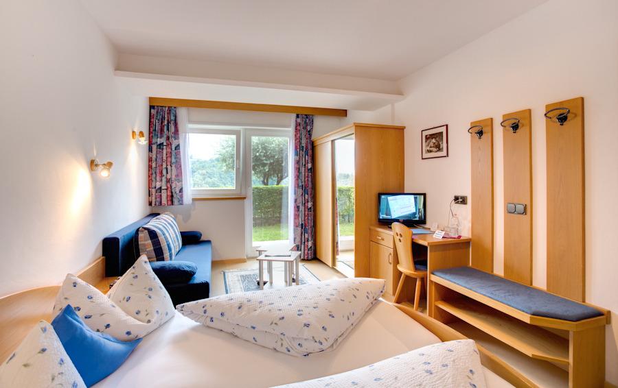 Dopo una lunga escursione in montagna, in bicicletta o in moto, la piscina all’aperto con prato prendisole invita a rilassarsi. I bambini hanno inoltre a disposizione un parco giochi dedicato.