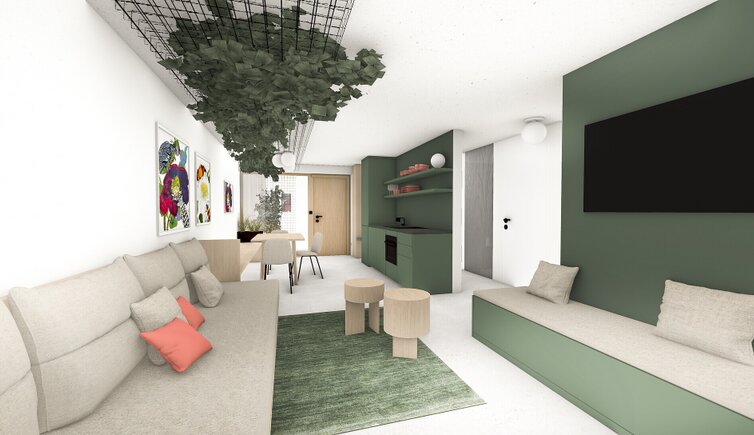 I 5 moderni appartamenti vacanza sono dotati di ampia terrazza o di un’area verde privata con mobili da giardino, e sono completamente arredati.
