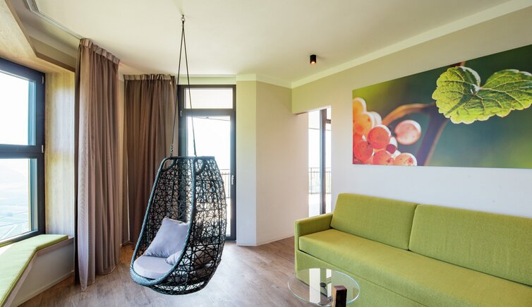 la posizione tranquilla tra i vigneti con vista mozzafiato sul Lago di Caldaro, i vigneti e frutteti che sembrano infiniti, le dolci colline, ampie vallate e villaggi da sogno.