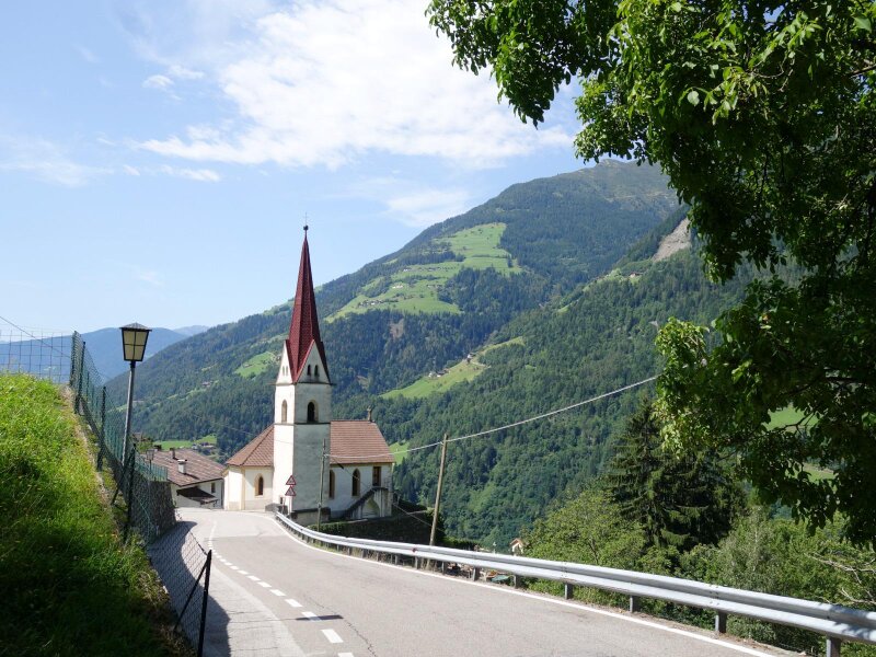 Passo - Sant’Orsola è situato ad un’altitudine di 682 m s.l.m. ed è una frazione del comune di San Leonardo in Passiria. La chiesa parrocchiale con il suo campanile si vede già da lontano. L’edificio sacro è dedicato a S. Orsola e risale al XVI secolo. Nel 1895 un incendio distrusse alcune parti della chiesa che però vennero ricostruite poco tempo dopo. Nel 1905 la chiesa fu arricchita da una nuova campana, costruita da Bartolomeo Chiappani.