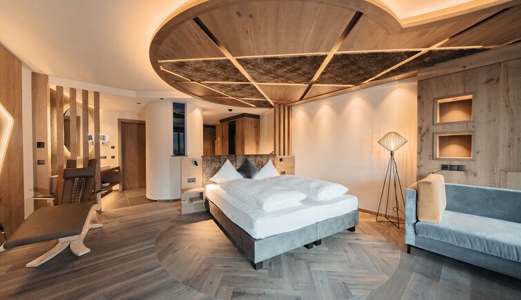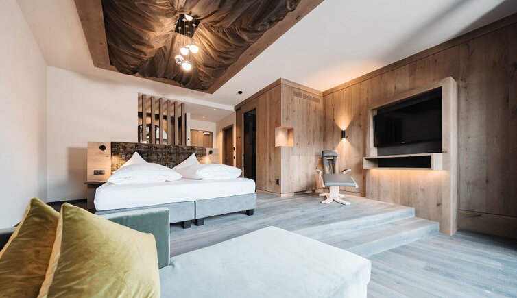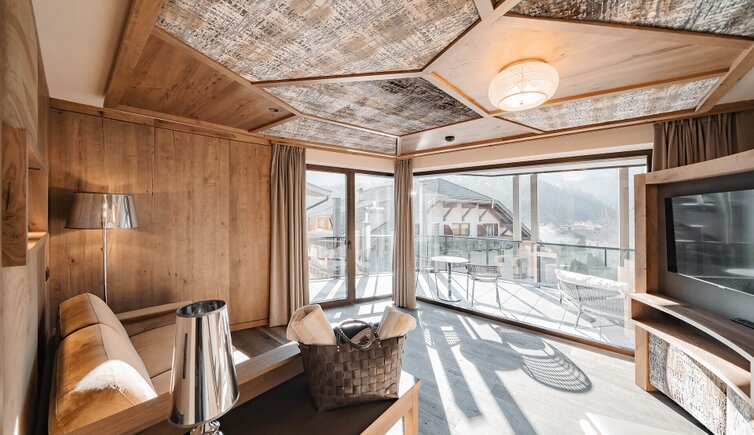 Ampie e lussuose suite e camere, arredate con stile ed eleganza, offrono notti da sogno e una vista panoramica sulle montagne.