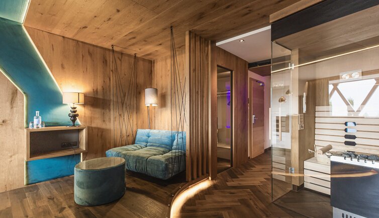 Ogni camera è un sogno di stile accogliente in colori speciali e con highlight; alcune suite hanno la propria sauna o eleganti lettini sospesi o sedie a infrarossi.