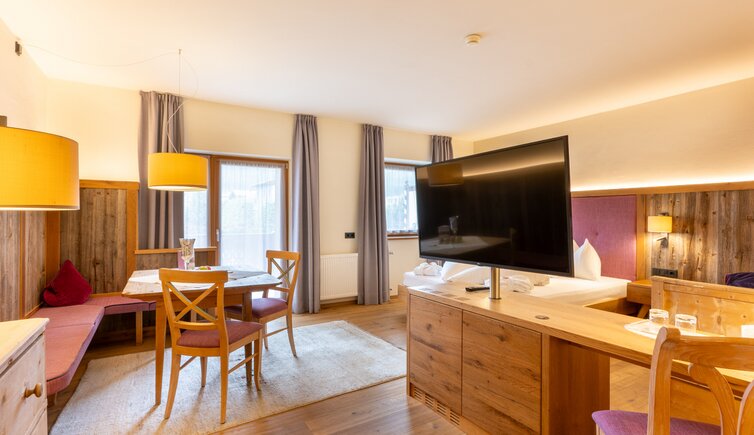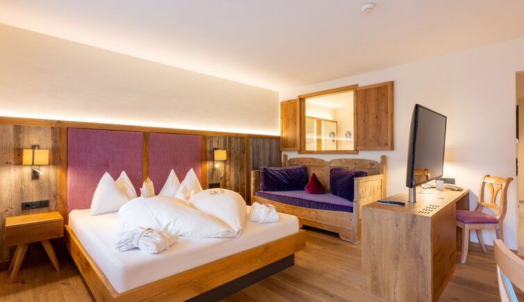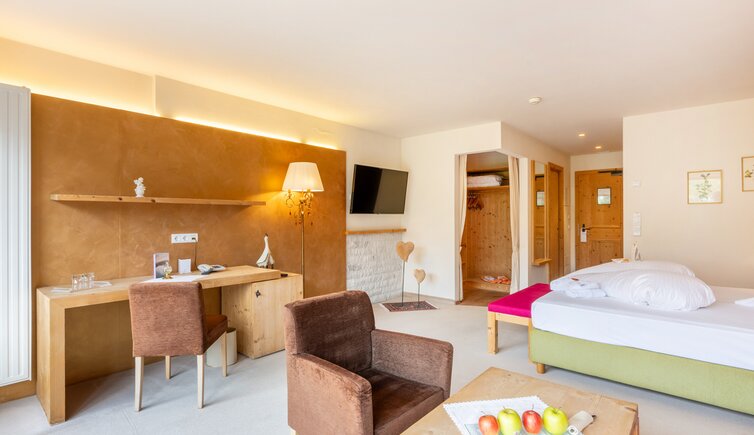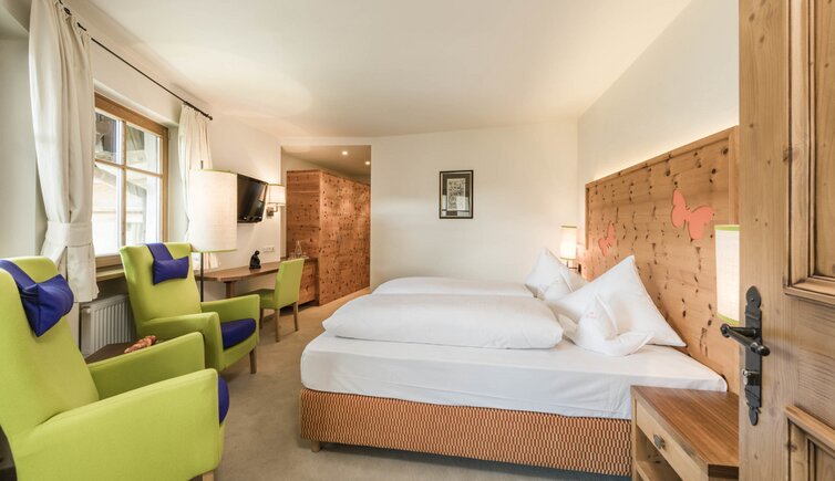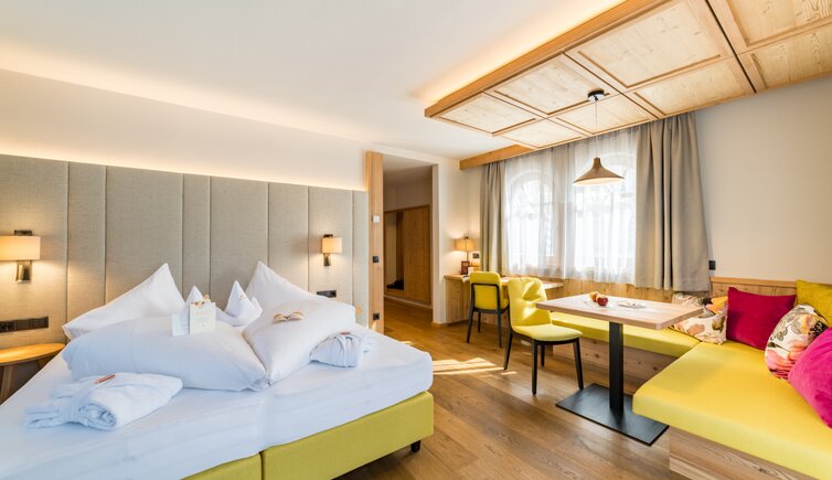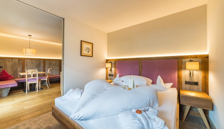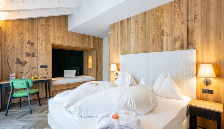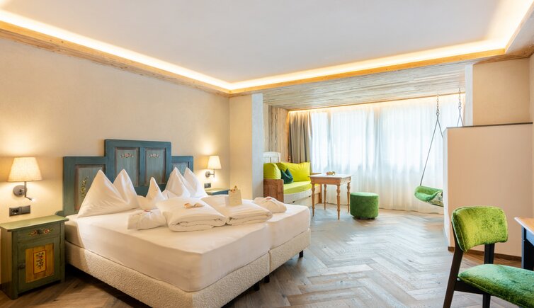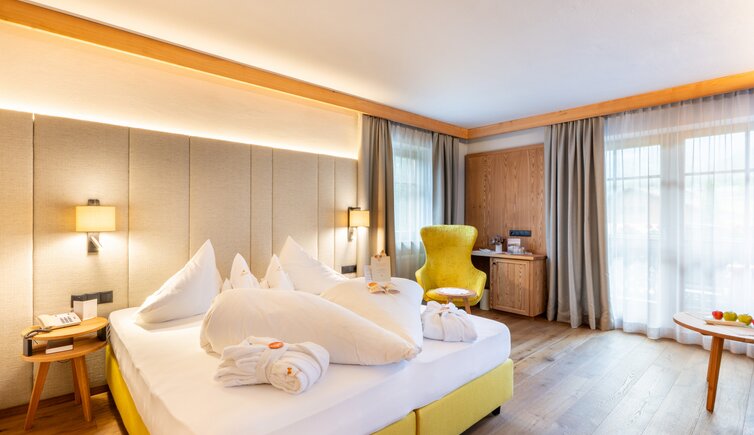 Le camere e le suite, accoglienti ed eleganti, offrono un’atmosfera familiare e un lusso ai massimi livelli. La cucina pluripremiata non lascerà alcun desiderio culinario insoddisfatto e anche la squisita carta dei vini, con vini altoatesini e rarità internazionali, vi convincerà. Immergetevi nel fantastico mondo acquatico e balneare interno ed esterno senza cloro, nell’elegante wellness & spa, e lasciate vagare lo spirito!