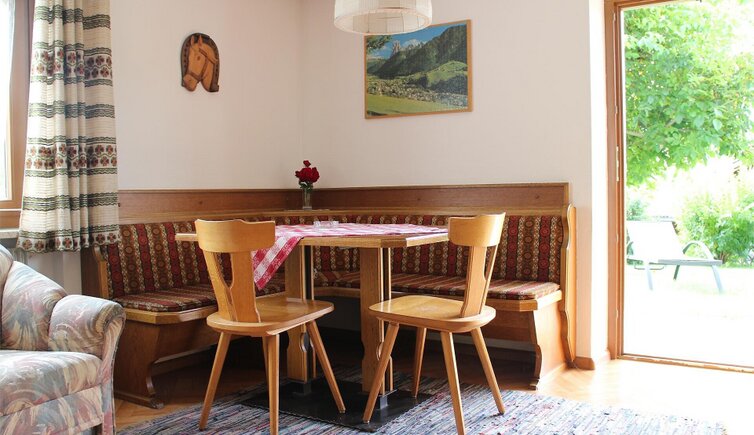 Alloggerete in accoglienti appartamenti dotati di balcone esposto a sud, con una magnifica vista sullo Sciliar e sul Gruppo del Sella. Durante una rilassante pausa in giardino, i vostri bambini potranno divertirsi nel parco giochi a loro dedicato. Inoltre è disponibile un comodo parcheggio per la vostra auto.