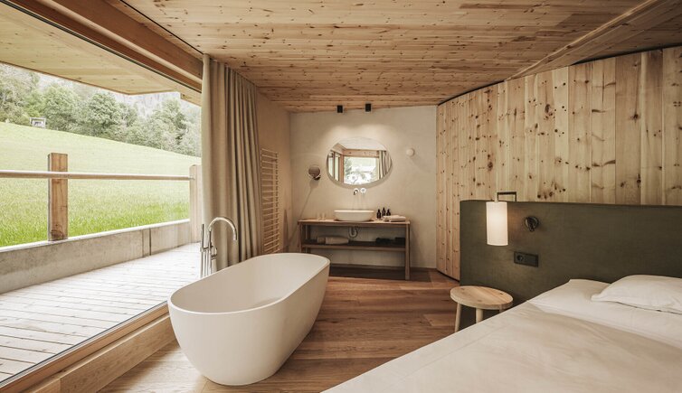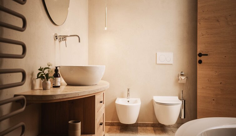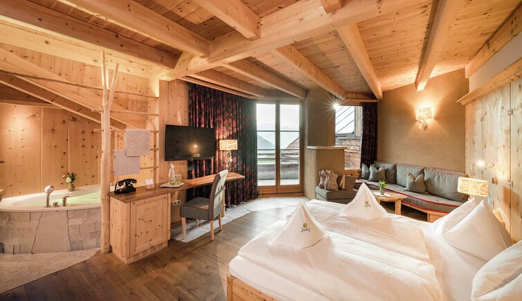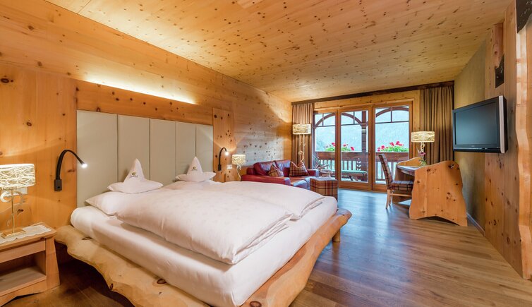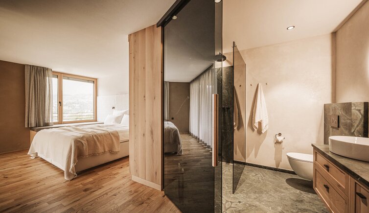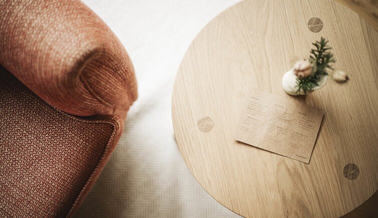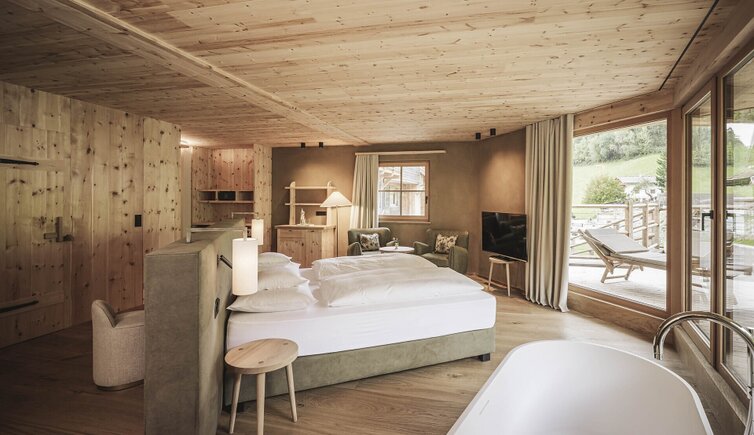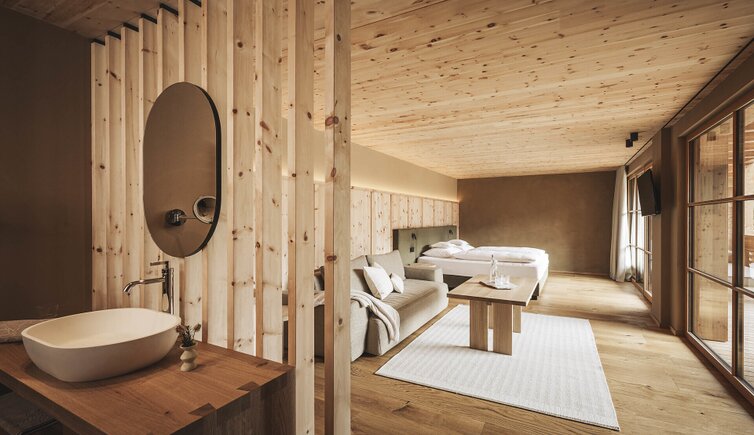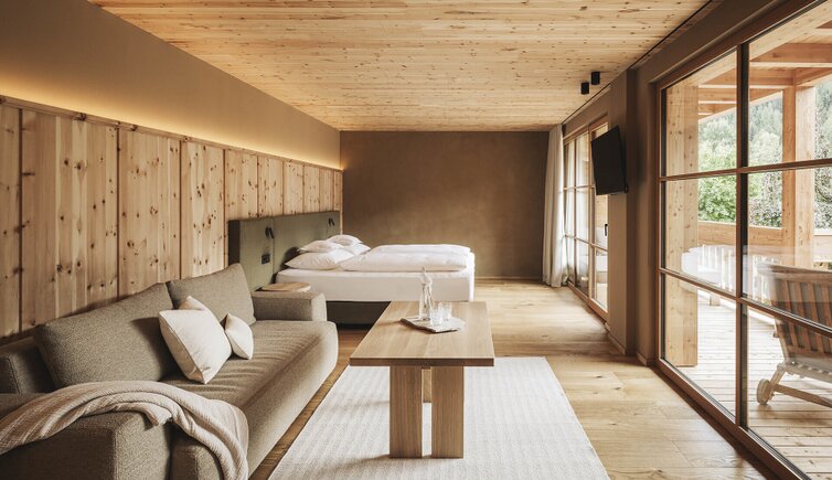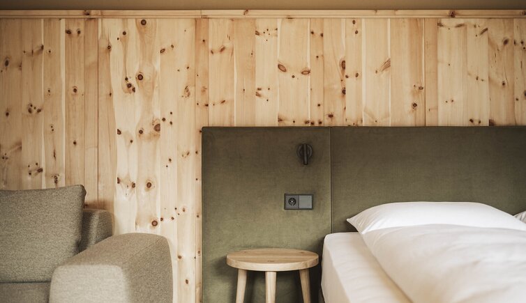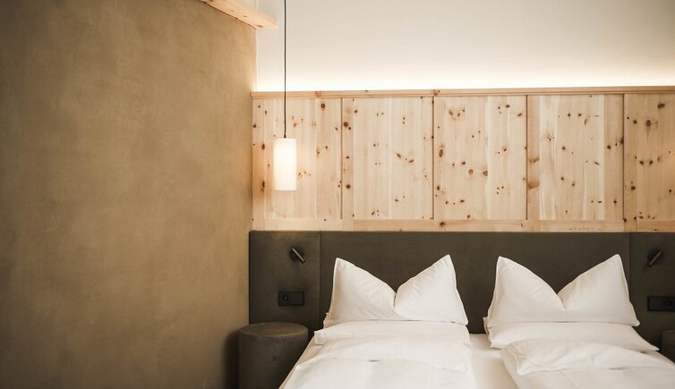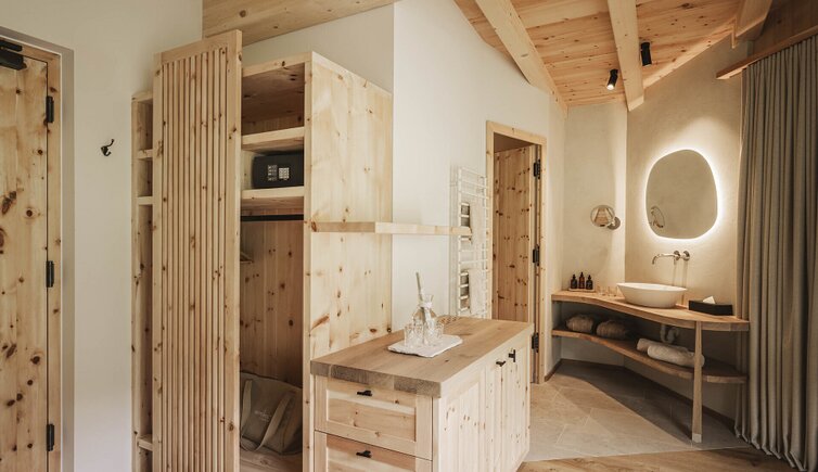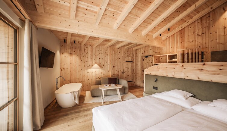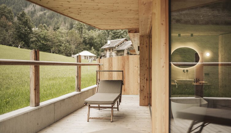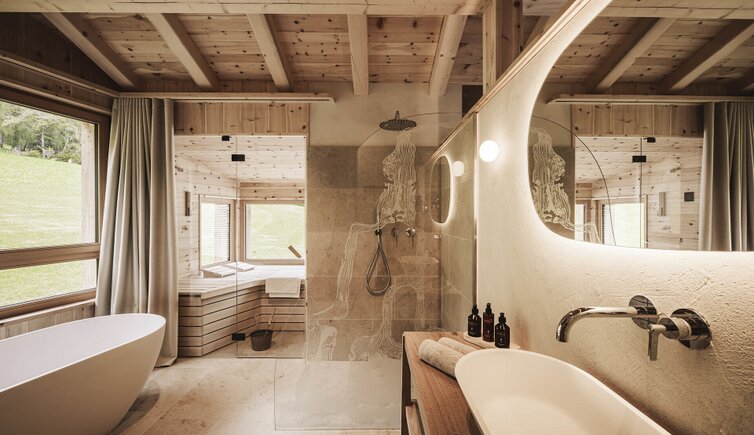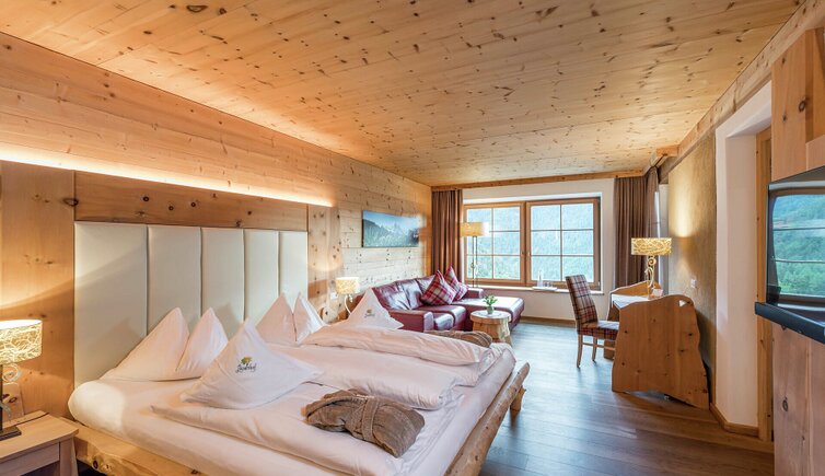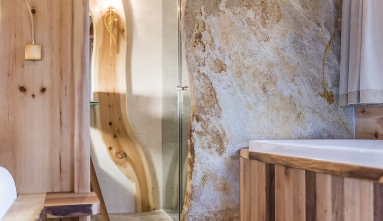 L’intero edificio è stato realizzato in legno di larice e pietre della nostra terra e si inserisce perfettamente nel paesaggio dolomitico. Le accoglienti stube, camere naturali, suite e appartamenti bio, la cantina in gneiss, il grande “Lüsner Badl” e il centro beauty con reparto massaggi sempre in stile Vi invitano a rilassarvi.