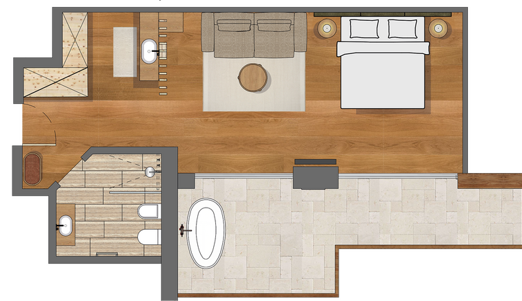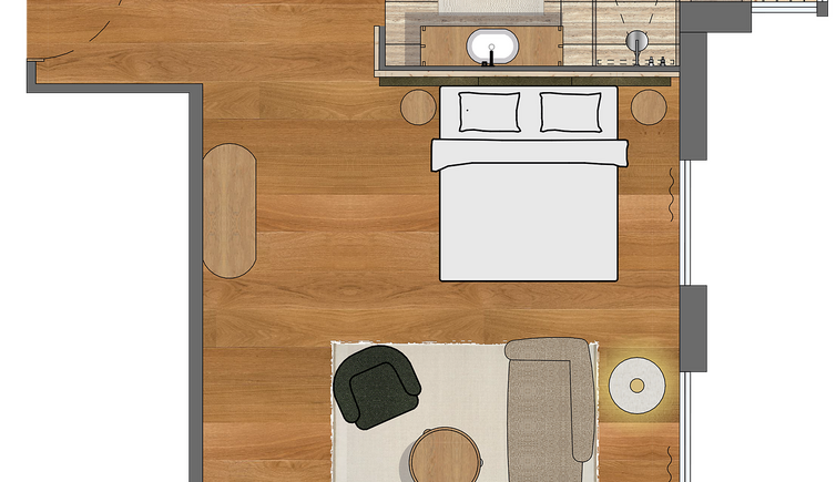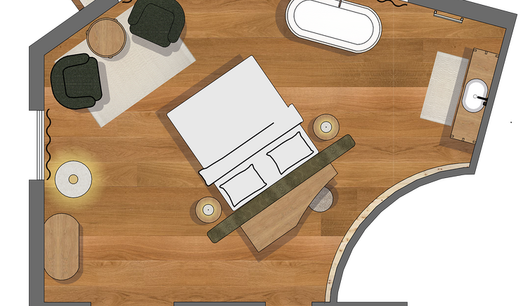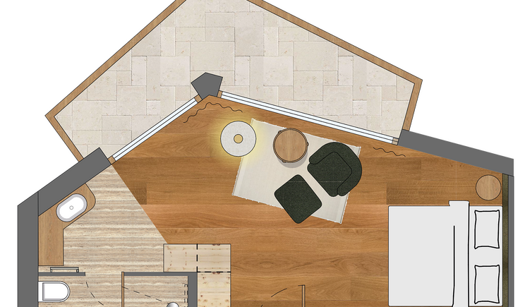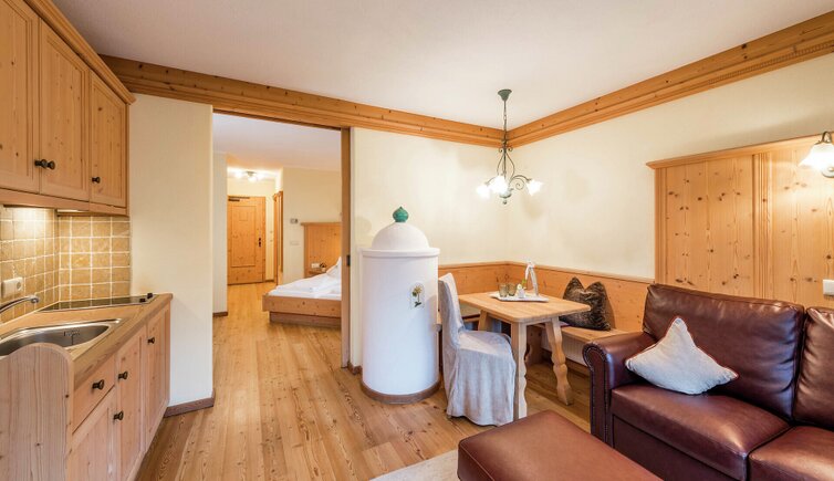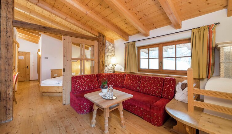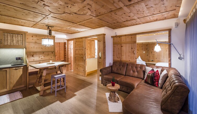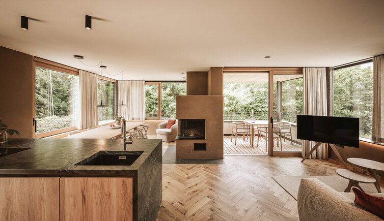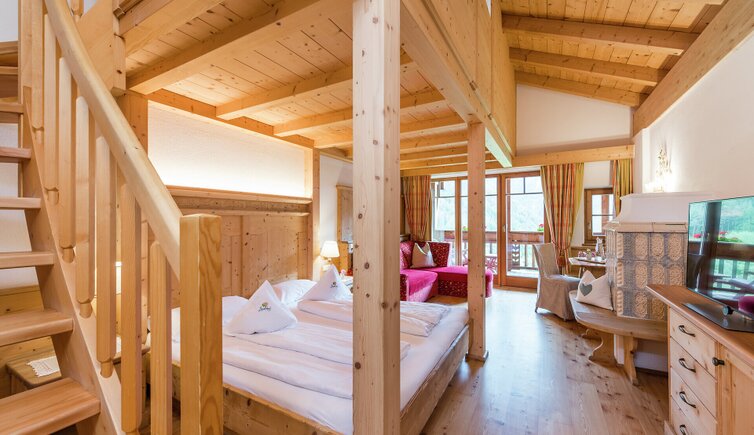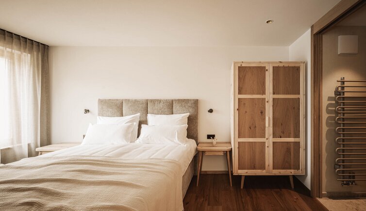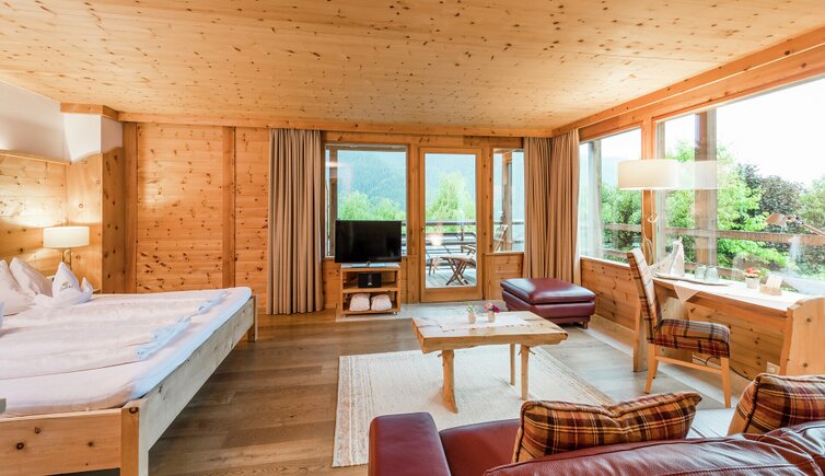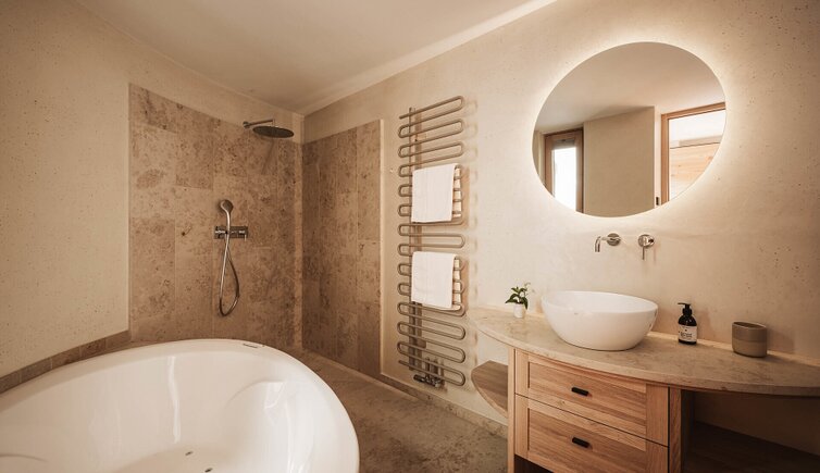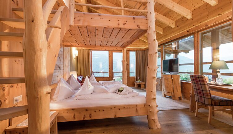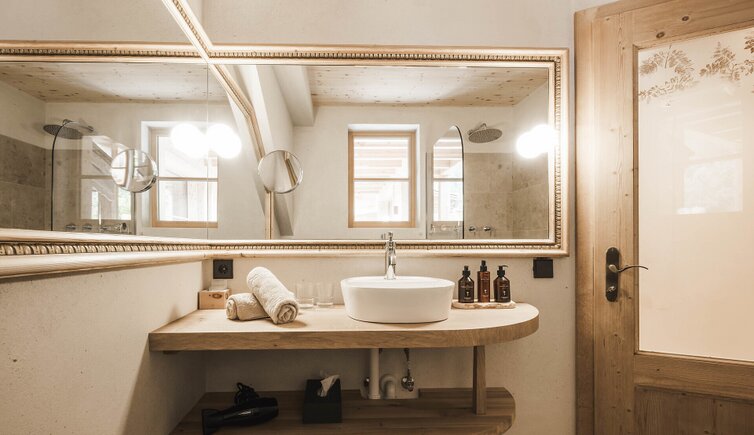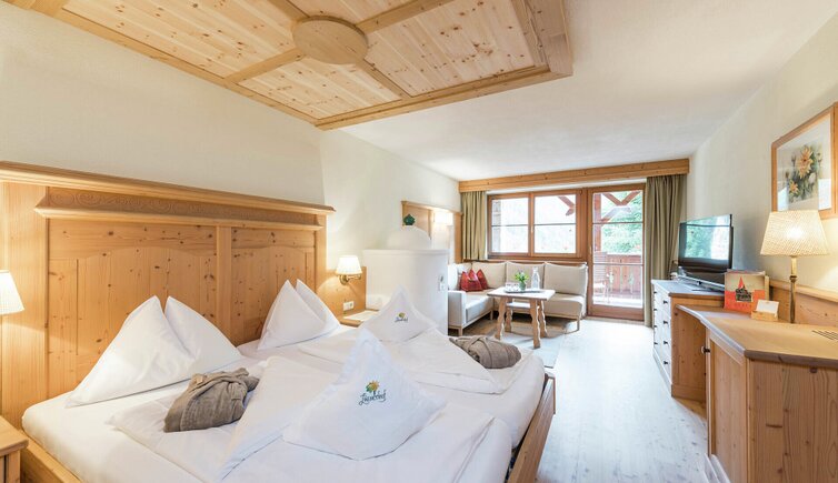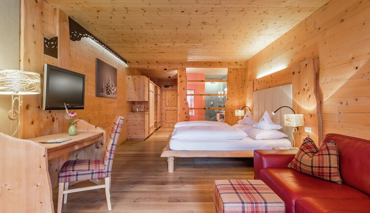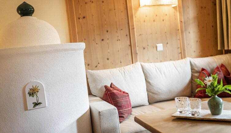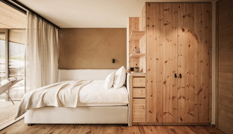 L’intero edificio è stato realizzato in legno di larice e pietre della nostra terra e si inserisce perfettamente nel paesaggio dolomitico. Le accoglienti stube, camere naturali, suite e appartamenti bio, la cantina in gneiss, il grande “Lüsner Badl” e il centro beauty con reparto massaggi sempre in stile Vi invitano a rilassarvi.