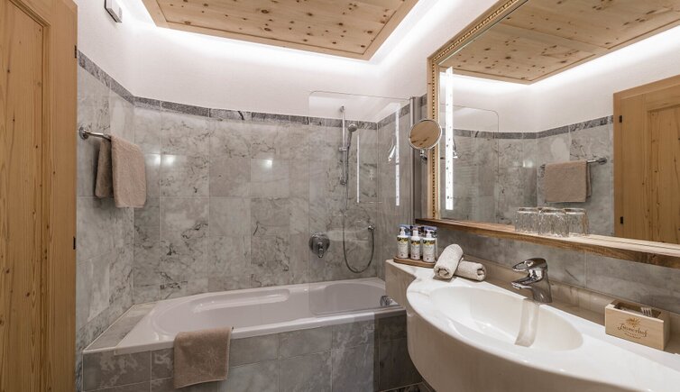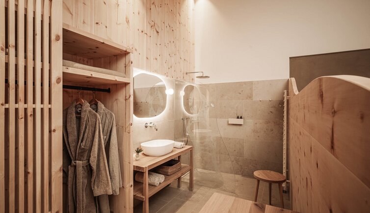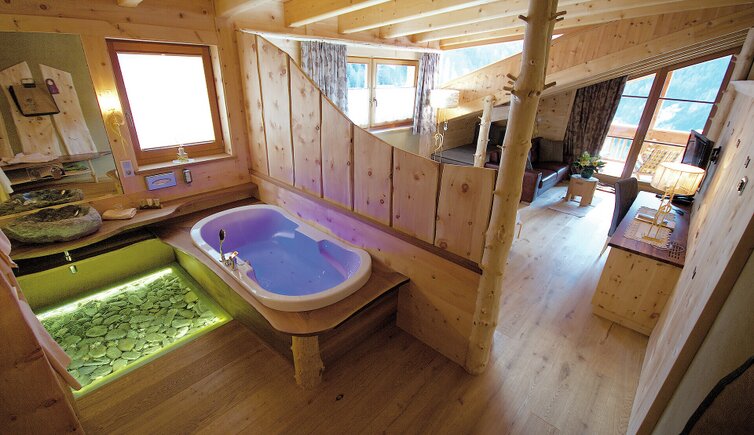 Nel nuovo centro “AlpinBadehaus” con ciclo di bagni, idromassaggi all’acqua salata, erbe riscaldate a vapore e bagno al cembro potrete godere del contatto diretto con la natura, e concludere in bellezza la Vostra vacanza d’immersione nella montagna scegliendo tra le molte escursioni a tema in estate o con le racchette da neve in inverno.