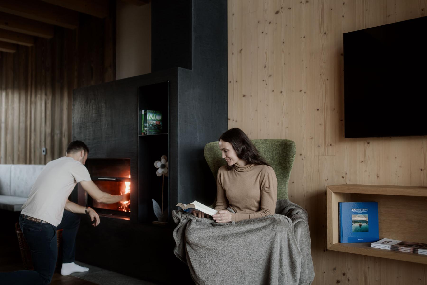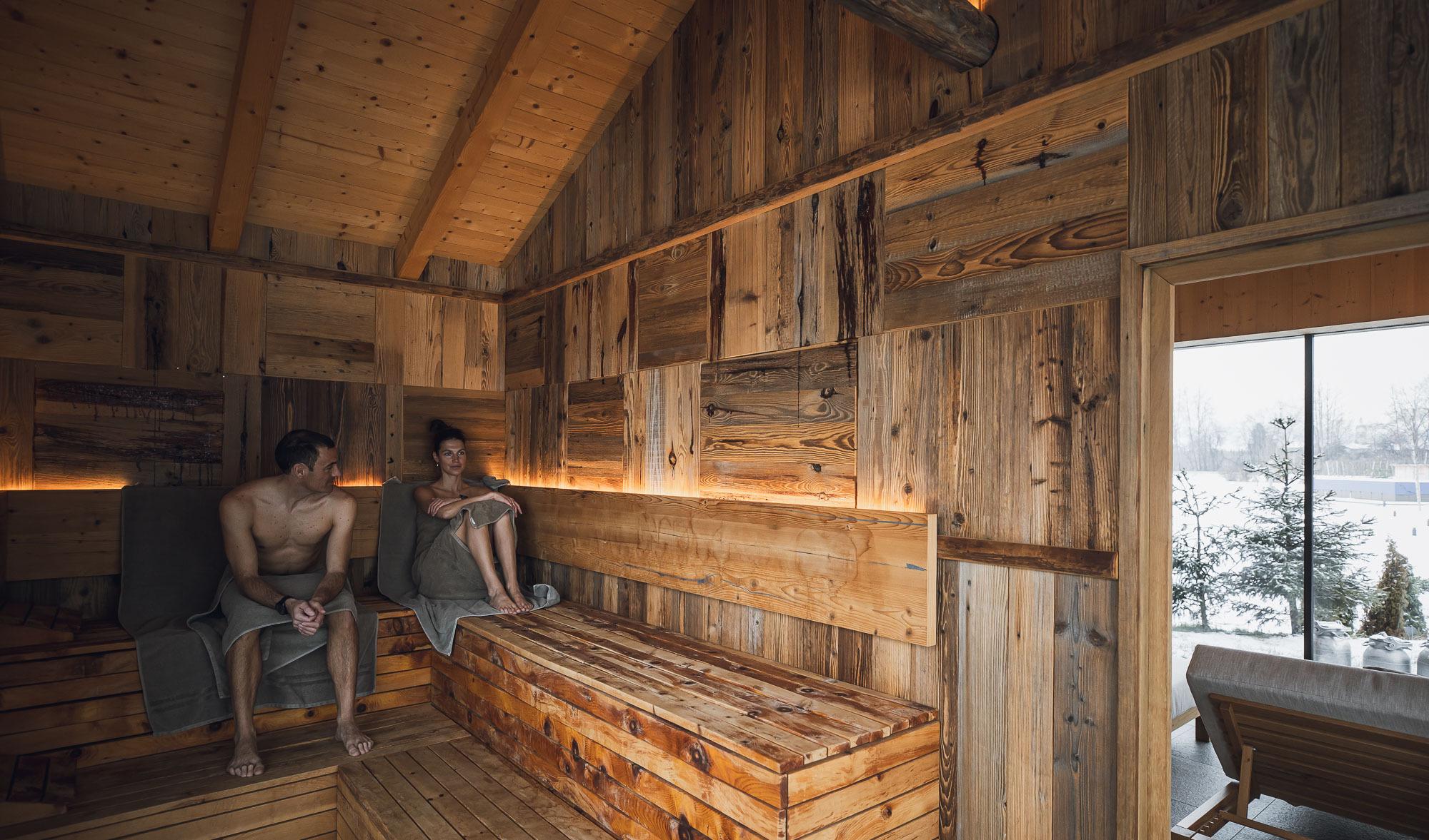 La sauna dello chalet e la sala relax sono situate nell’ampio prato dove potrete rilassarvi.