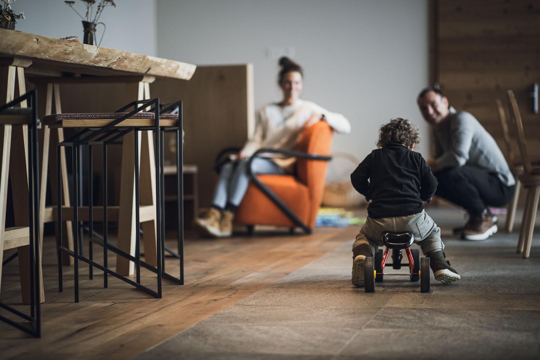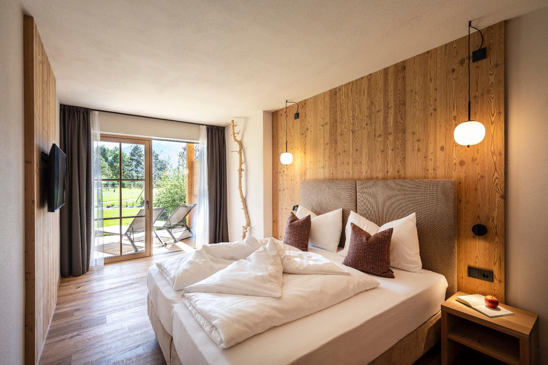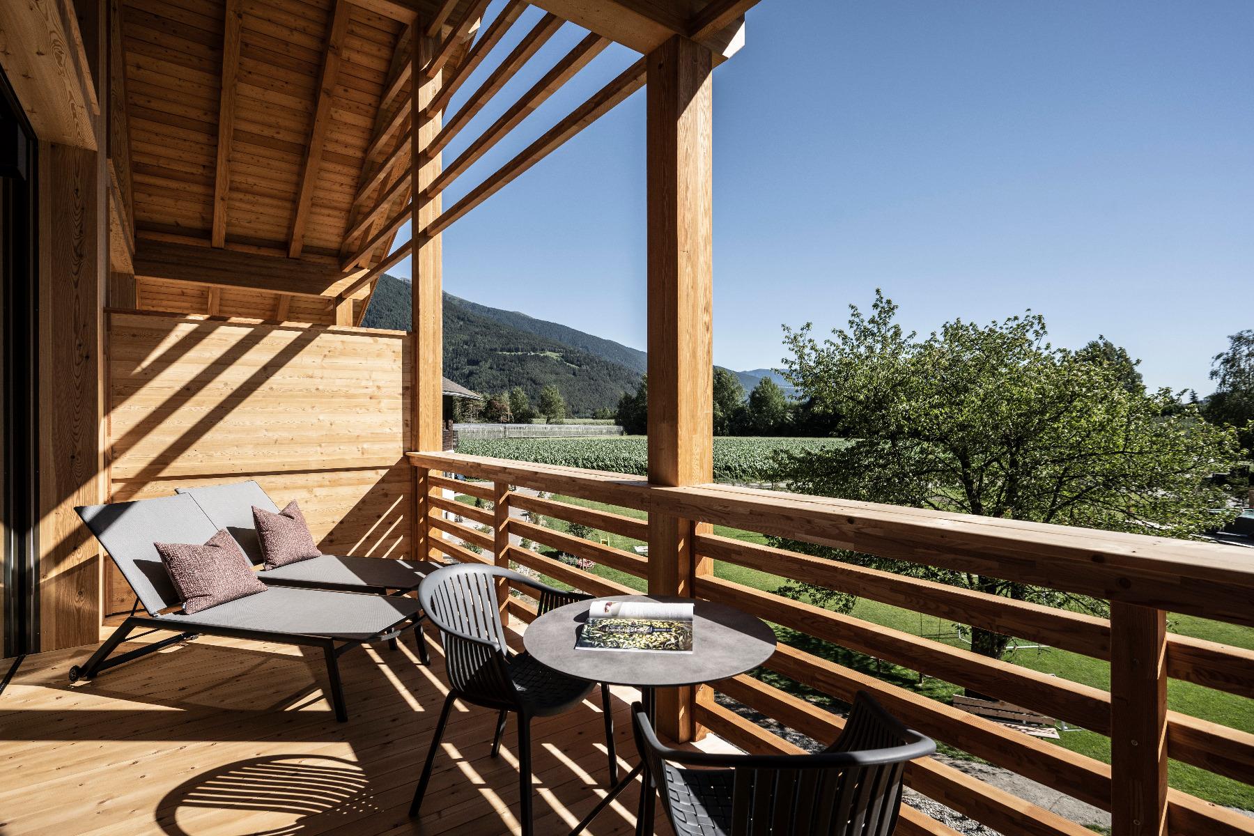 Sono disponibili quindici appartamenti e cinque chalet, che vi vizieranno con assoluta libertà di vacanza, materiali e tessuti naturali, numerose ore di sole e un panorama a 360 gradi.