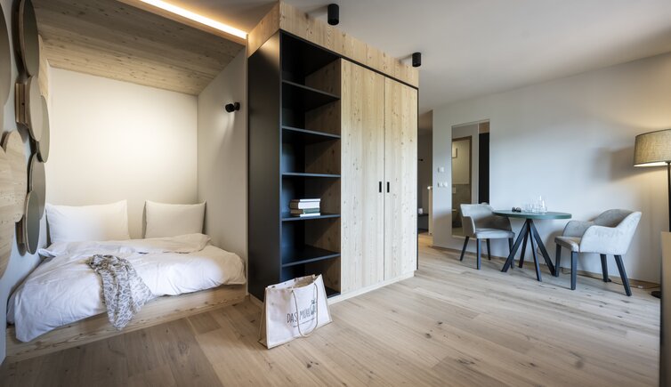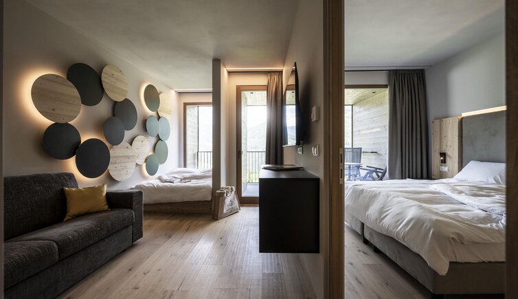 Natura all’esterno come all’interno - l’arredamento riflette la natura con il legno di melo e di salice, e le grandi vetrate vi conquisteranno con una vista incomparabile sulle montagne altoatesine. Rilassatevi insieme ai vostri cari nella nuova area wellness con Family Spa, area sauna, idromassaggio con panorama, piscina esterna ed interna e molto altro ancora.