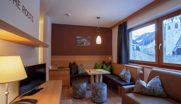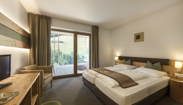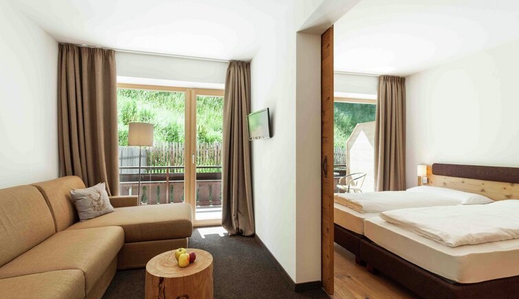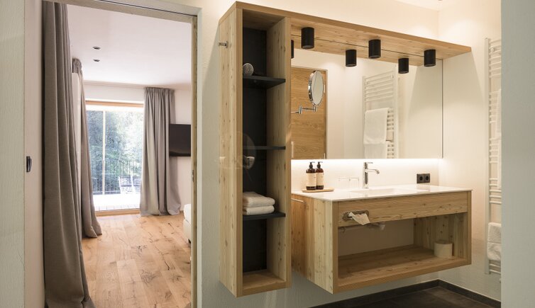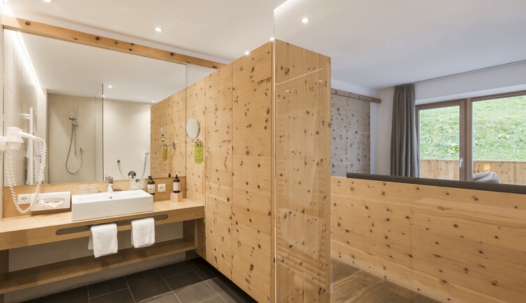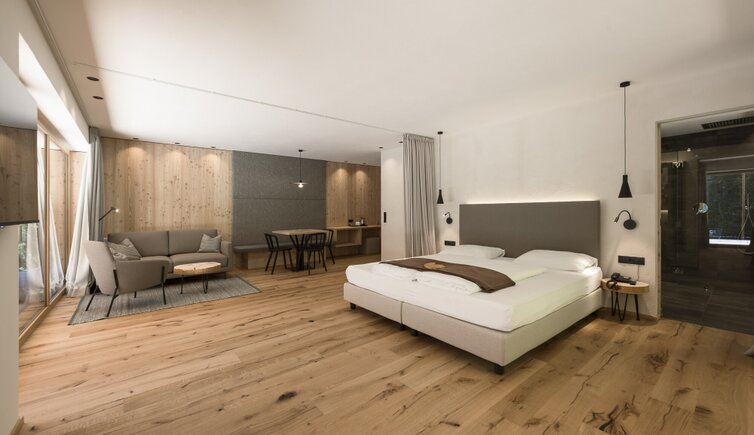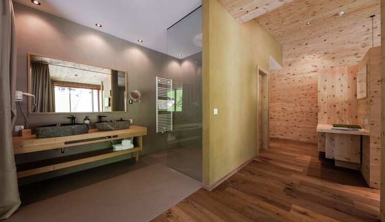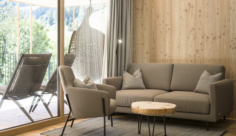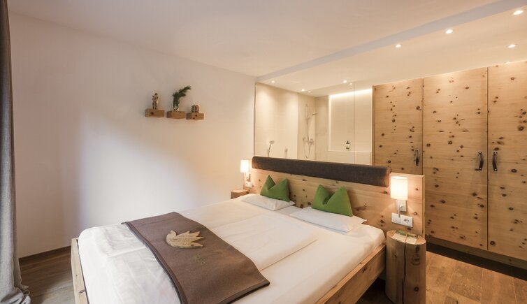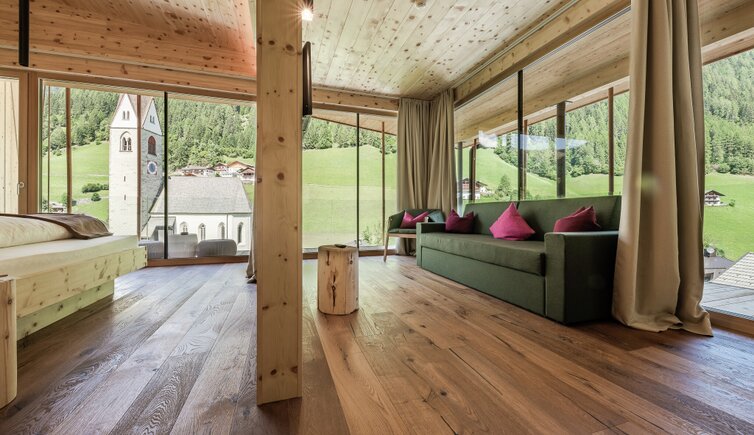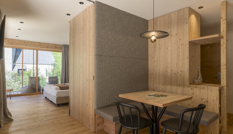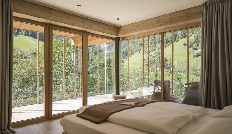 Le straordinarie camere naturali, arredate con materiali locali, promettono un relax totale. Le altalene in cirmolo fatte a mano in ogni stanza faranno rilassare l’anima, permettendovi di godere appieno la vostra vacanza!