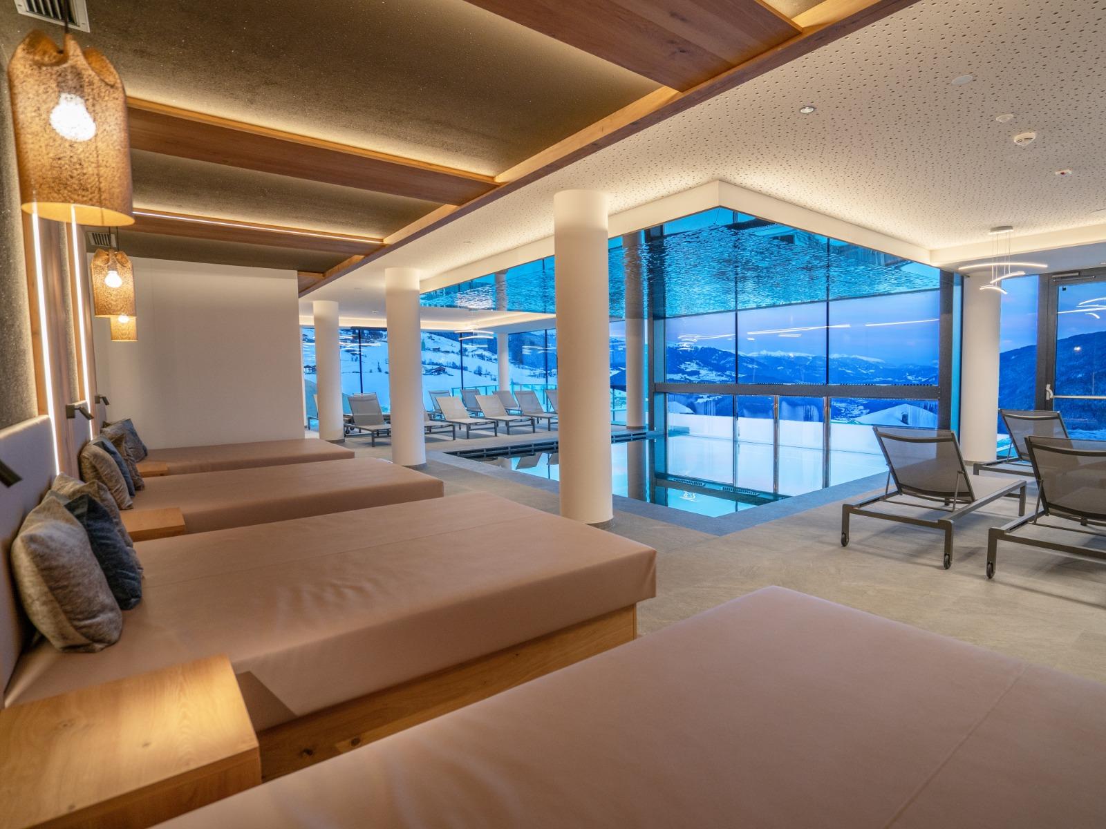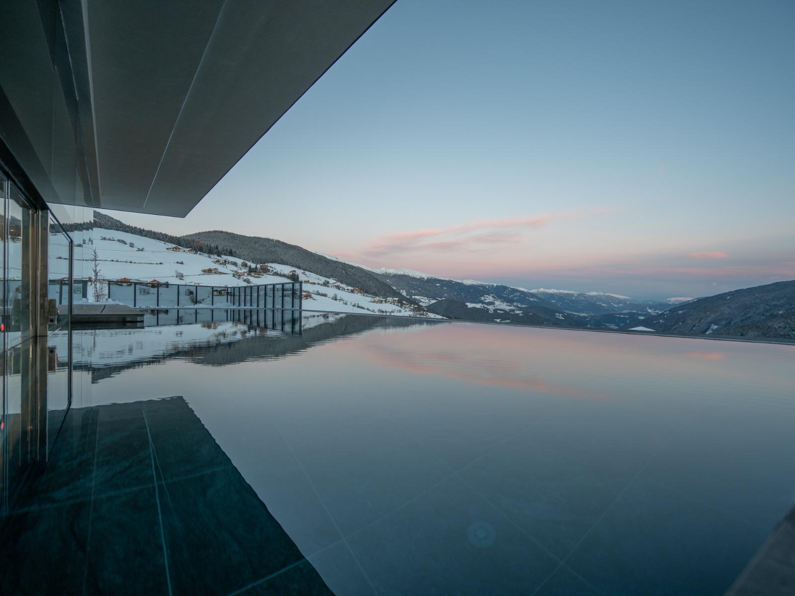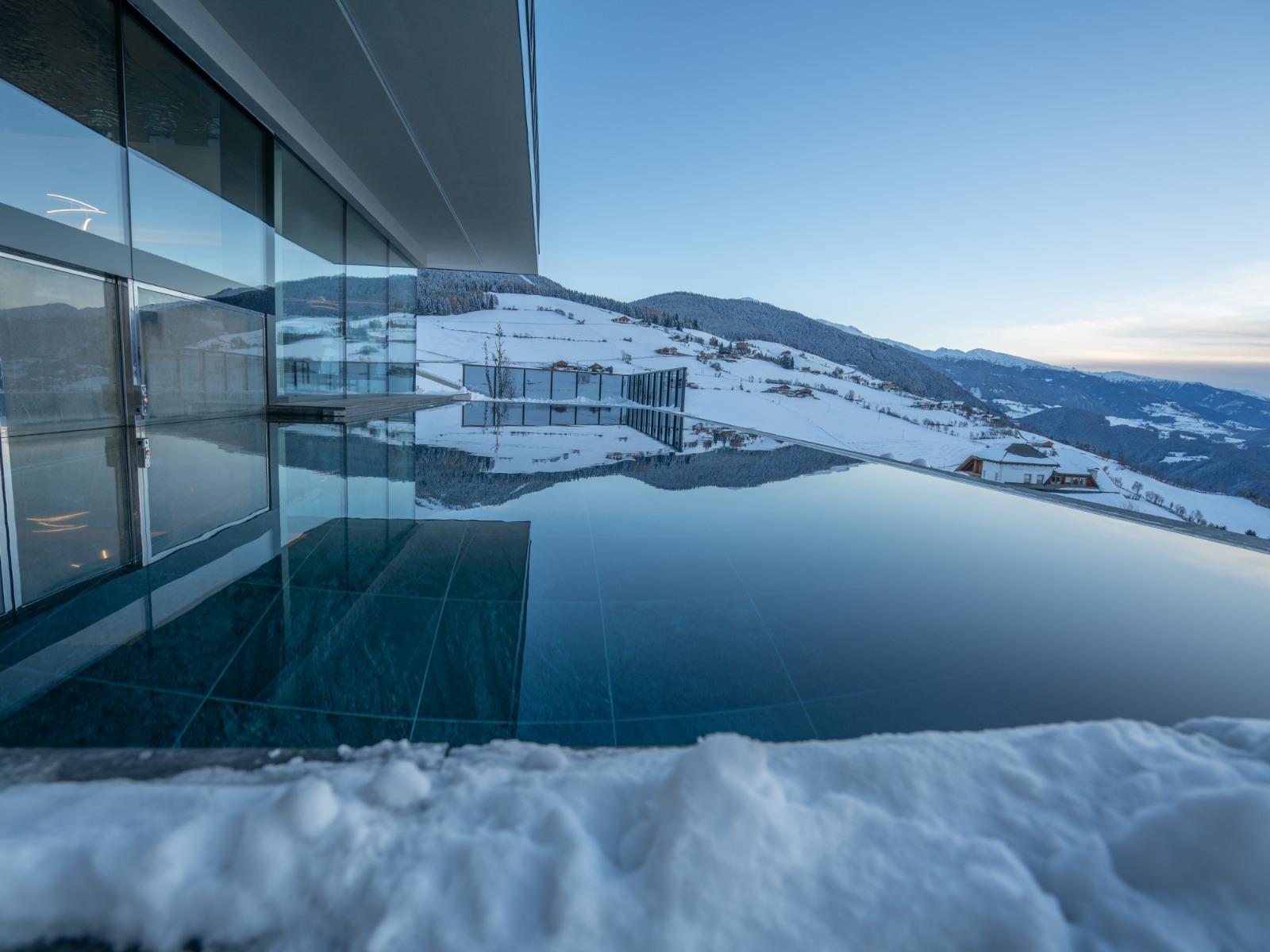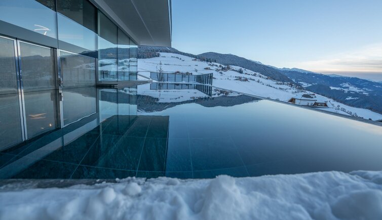 Nuova area benessere con piscina a sfioro interna ed esterna e vista diretta sulle montagne altoatesine