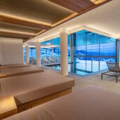 Area sauna (accesso dai 16 anni): Sauna finlandese, bagno turco con cristallo di rocca e nebulizzatore di salamoia, cabina a infrarossi Luis Trenker, docce speciali (a nebbia, a pioggia, a secchio, a spruzzo) e fontana di ghiaccio con ghiaccio tritato