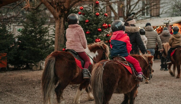 Bambini in groppa a un Pony nel giardino dei Cappuccini Lana (venerdì ore 15.00-17.30, sabato ore 13.30-17.30, domenica ore 12.30-17.30 Uhr).