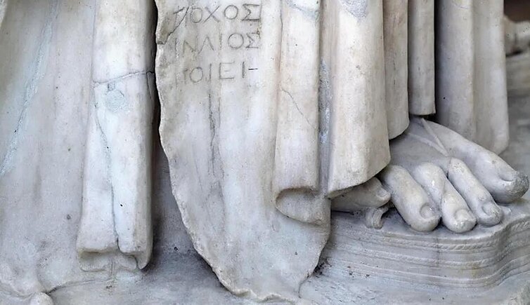 Sebbene siano piuttosto rare le firme d’artista sulle opere d’arte antica, nel Museo Nazionale Romano se ne possono riconoscere alcune incise su statue, gemme, rilievi e affreschi. Queste firme, spesso appena leggibili, raccontano una storia di orgoglio e di identità professionale in un’epoca in cui l’arte era considerata soprattutto un mestiere e non ancora un’espressione personale come la intendiamo oggi.