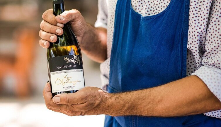 Degustazione di vini e visita della tenuta Haidenhof a Cermes. La tenuta Haidenhof è nota per i suoi eccellenti vini. Attualmente sui pendii intorno al maso crescono sette differenti varietà di vitigni.