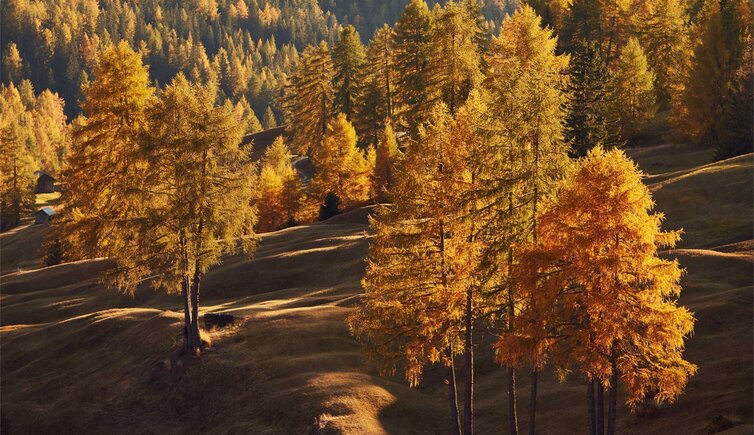 L'autobus ci porta a Langfenn passando per Meltina. Sui bellissimi prati di larici del Salto camminiamo verso San Genesio e poi scendiamo verso il ristorante Tschaufenhaus e Frasinetto, dove ci aspetta l'autobus.
