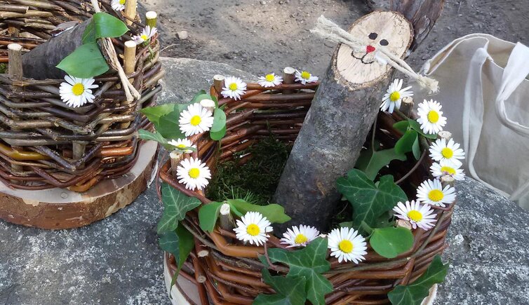 Vaghiamo per il bosco e raccogliamo legno, rami pieghevoli, muschio, fiori e foglie... Poi scegliamo un angolo appartato per fare un decorativo nido di Pasqua che riempiremo di piccole delizie. Inoltre facciamo diversi giochi per scoprire la natura.