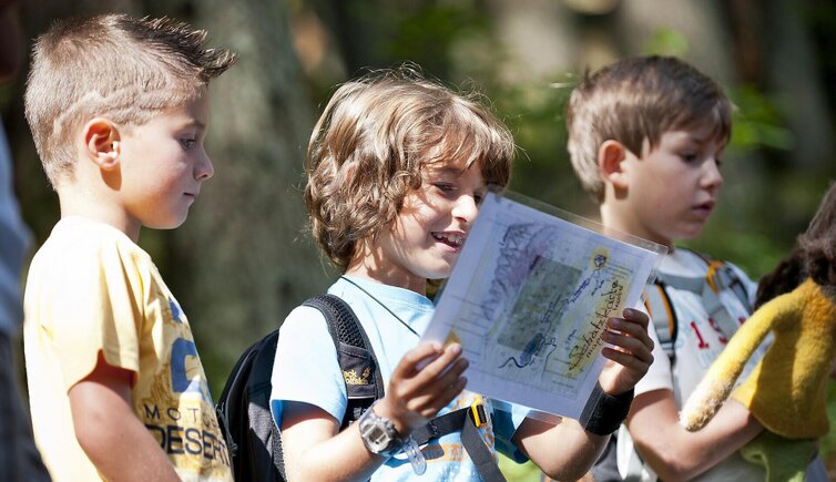 Durante una piccola escursione, i bambini partecipano a una divertente caccia al tesoro ispirata alla leggenda del Re Laurino. In modo giocoso scoprono la storia e la magia della leggenda, esplorando la natura intorno al Catinaccio. Cercano oggetti nascosti, risolvono enigmi e imparano così, quasi senza accorgersene, di piante, animali e delle leggende locali.