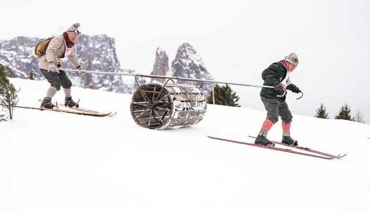 Lo sci di una volta! Durante la giornata nostalgica sull’Alpe di Siusi, lo sci dei tempi passati torna a vivere.