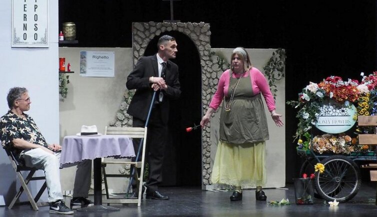 Lo spettacolo prende spunto da quanto è accaduto al cimitero di Trento, invaso dai conigli che il Comune non sapeva come eliminare. Le vedove e i vedovi che frequentavano il cimitero e si fermavano a chiacchierare sulla panchina, erano esasperati dai conigli che mangiavano i fiori delle tombe. Ma fuori dal cimitero nascono anche amicizie e amori, più o meno corrisposti, fra le persone alle prese con i propri dolori e le proprie speranze. E ovviamente non mancano i pettegolezzi e i tentativi maldestri di catturare l’attenzione di qualche vedovo. Il tutto con leggerezza e senza sbeffeggiare il dolore (reale) di chi ha perso i propri cari.