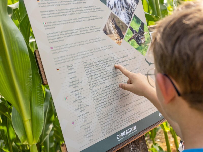 Proprio accanto al Parco Avventura KronAction e al Laghetto di Issengo, da alcuni anni un campo di mais si trasforma in un'avventura entusiasmante per tutta la famiglia. Tra le piante di mais, che in estate e inizio autunno superano di gran lunga l'altezza dei visitatori, si nasconde un labirinto con un quiz sugli animali del bosco. La coltivazione del mais, d'altronde, è molto diffusa in Val Pusteria, così come quella delle patate, le cosiddette "Puschtra Erdäpfl".