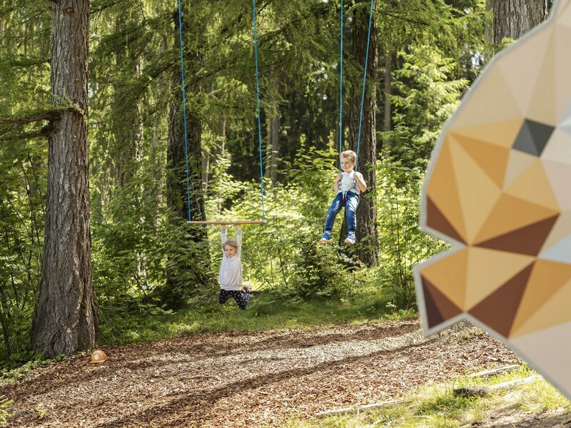 Sul sentiero tematico “Wald-Wild-Wunder-Weg” i bambini possono conoscere gli animali della foresta e giocare nella natura