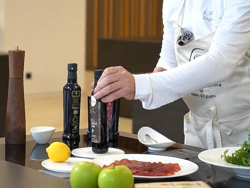 L'aceto balsamico di mele è noto per la sua piacevole leggerezza. Accostato a bresaola, rucola fresca, parmigiano e scorza di limone grattugiata, si trasforma in una vera specialità culinaria.