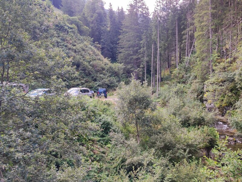 Andiamo in auto in fondo alla Val d'Ultimo in direzione di Santa Gertrude e parcheggiamo circa un chilometro e mezzo prima del paese. Sul lato sinistro della strada si trovano la fermata dell'autobus Falschauern e un piccolo ponte che attraversa il torrente Valsura. Siamo a 1.328 metri di altitudine: qui attraversiamo il ponte e raggiungiamo un piccolo parcheggio.