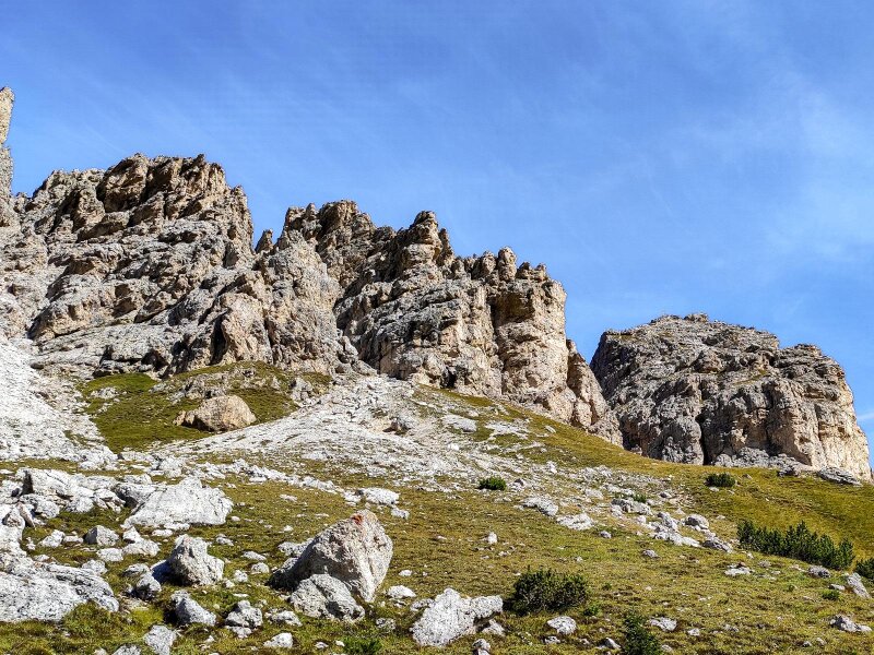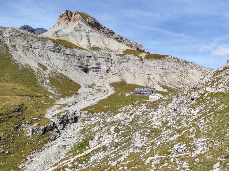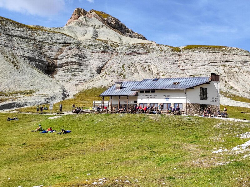 Proseguiamo lungo il margine occidentale del Gherdenacia. In breve si arriva anche al Rifugio Puez (2.475 m s.l.m.). Qui vale la pena fare una sosta, che ci siamo meritati! Dopo esserci rifocillati, riprendiamo la via del ritorno: scendiamo ripidamente nella Vallunga, sempre all'interno del Parco Naturale Puez-Odle. La Vallunga è una meta per escursioni e attività in ogni stagione.