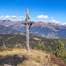 Dalla sella scendiamo di nuovo verso l'altopiano per seguire le indicazioni "Mittagspitz" e, dopo una breve salita, raggiungiamo la vetta di oltre 2.000 metri nelle Alpi Sarentine. La croce di vetta è stata installata poco più di un decennio fa. Il ritorno si svolge lungo un ripido sentiero in discesa. Questo percorso, almeno in discesa, è più diretto rispetto alla salita e meglio segnalato. Dopo circa tre ore di cammino, senza contare le pause, raggiungiamo nuovamente il nostro parcheggio.