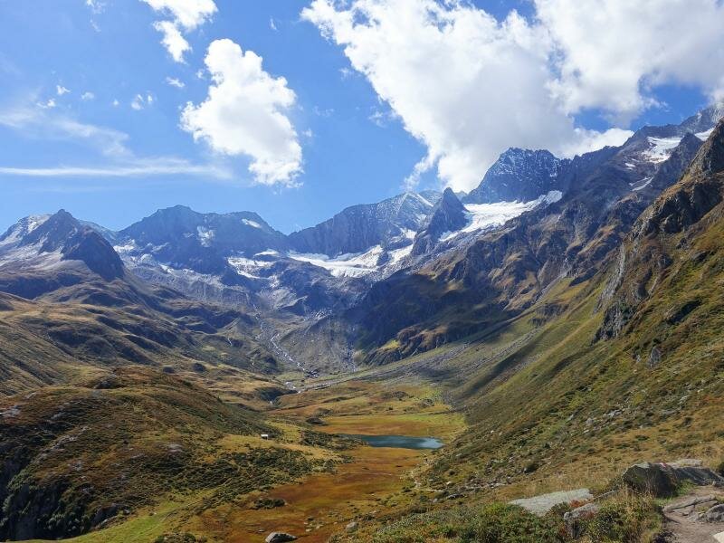 Sulla strada alpina del Passo del Rombo (Timmelsjoch), poco dopo il ristorante Hochfirst, sulla sinistra si trova il bivio per il parcheggio della malga Seeber Alm. È questo il punto di partenza per la nostra breve escursione. Qui, a quasi 1.900 m s.l.m. e nel cuore della catena principale alpina, nel mese di settembre il paesaggio ricorda già l'autunno.