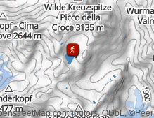 Arrivati a Valles (Vals), saliamo con la cabinovia Jochtal ai 2.000 m di quota della stazione a monte, dalla quale ci incamminiamo in leggera discesa verso il Passo di Valles (Valler Jöchl) e l'Alta Via Rotenstein. Oltrepassato il limite degli alberi e Malga Rotenstein, attraversiamo un ripido pendio su sfasciumi detritici - i punti più critici sono attrezzati con catena corrimano per facilitare la progressione - e guadagniamo il Giogo Peachenjöchl.