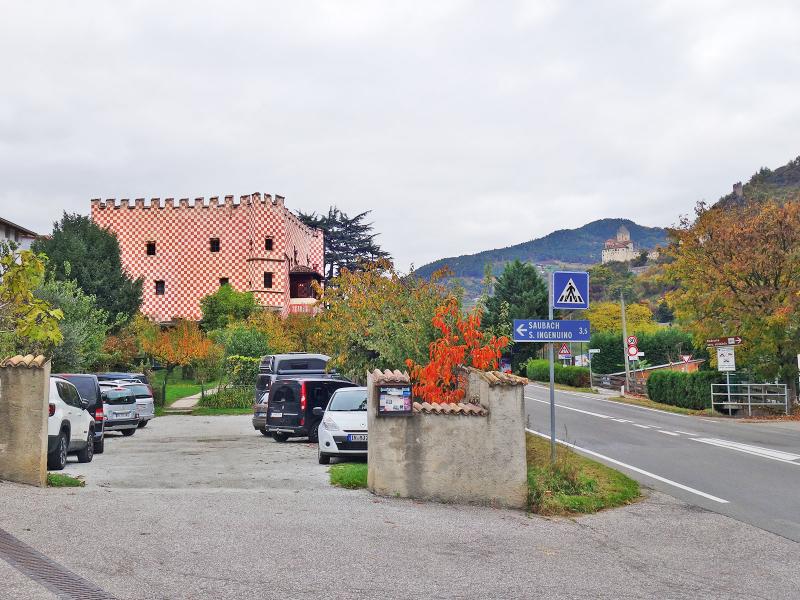 Ora scendiamo di nuovo e seguiamo il segnavia "al Sentiero del Castagno" (Zum Keschtnweg) verso Sant'Ingenuino e Barbiano. Questo tratto di escursione circolare si sviluppa su strada asfaltata e presenta solo un leggero dislivello. A Barbiano passiamo per la Chiesa di San Giacomo con il suo famoso campanile pendente e scendiamo lungo il sentiero n. 5 che, attraverso dei pendii scende a valle fino a Colma. Qui si chiude il cerchio e la nostra passeggiata circolare, ricca di paesaggi e di cultura, si conclude.