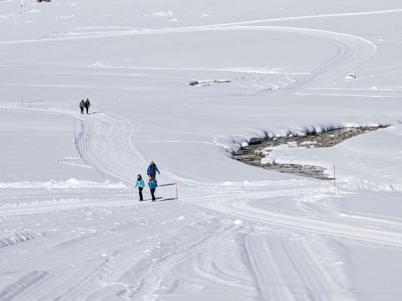 Questa si trova a 1.865 metri di quota nel Parco Naturale Gruppo di Tessa. In questo paesaggio da fiaba incontriamo i fondisti: la pista inverte la rotta poco prima del rifugio e riconduce verso Plan. Malga Lazins, di recente costruzione, è aperta tutto l'anno per gli escursionisti giornalieri - in estate è una meta molto apprezzata che mette a disposizione anche una stazione di ricarica per e-bike. Anche per noi, dopo una breve pausa, è giunto il momento di tornare.